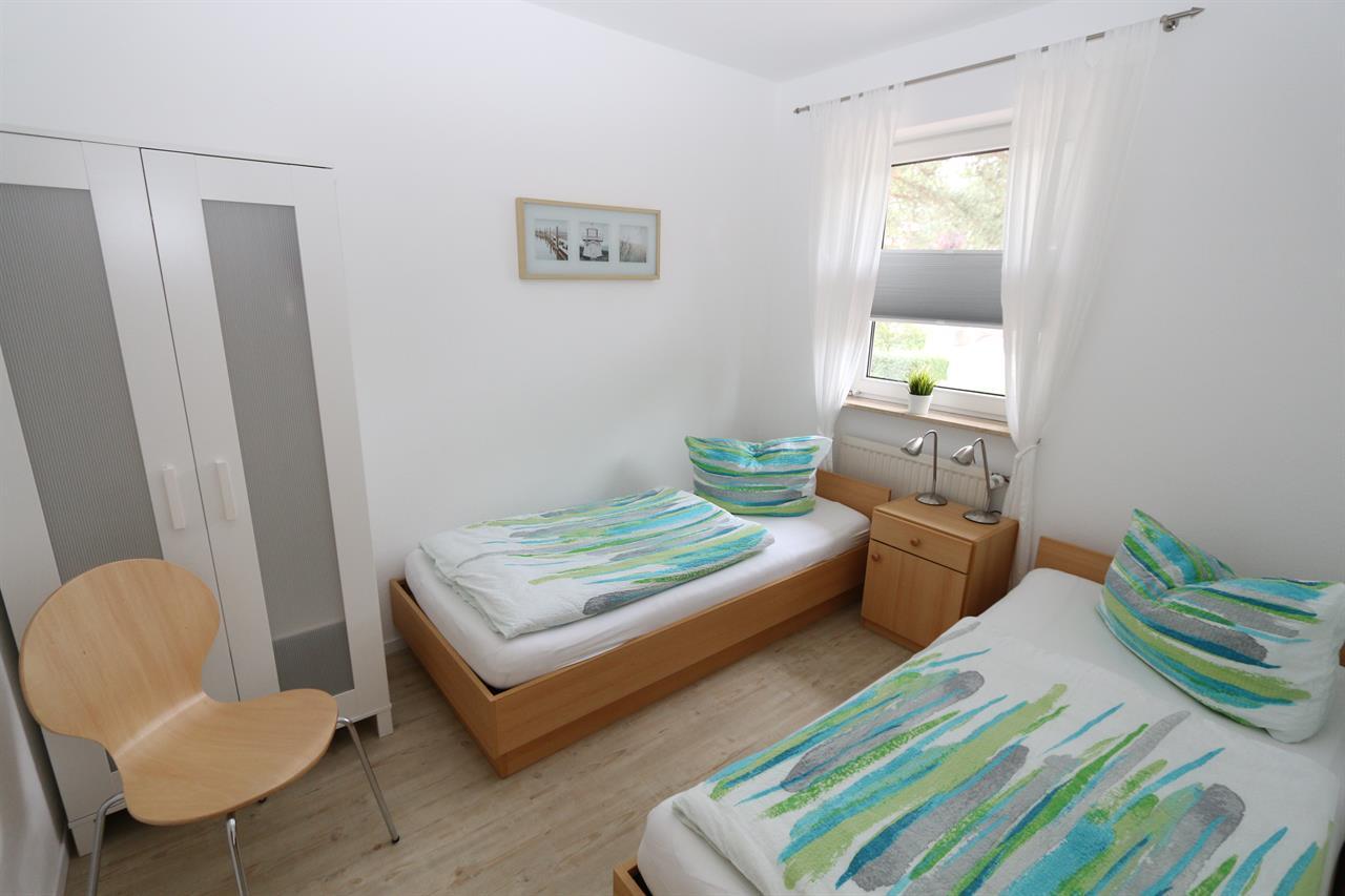 Schlafzimmer mit 2 Einzelbetten, Duschbad, Flur mit Garderobe und Einbauschränken, separater Eingang, Südwest-Balkon