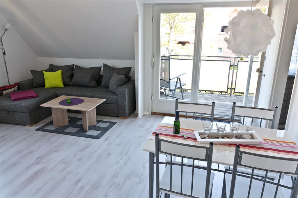 Die Ferienwohnung wurde im Dezember 2013 total renoviert und neu eingerichtet Sie verfügt über einen Wohnschlafraum mit Schlafcouch, sep. Küche, 1 Schlafraum mit Doppelbett, Dusche/WC. Moderne Einrichtung. F-TV - Flachbildschirm mit SAT-Anlage. Großer möblierter Balkon. PKW - und Fahrradstellplatz