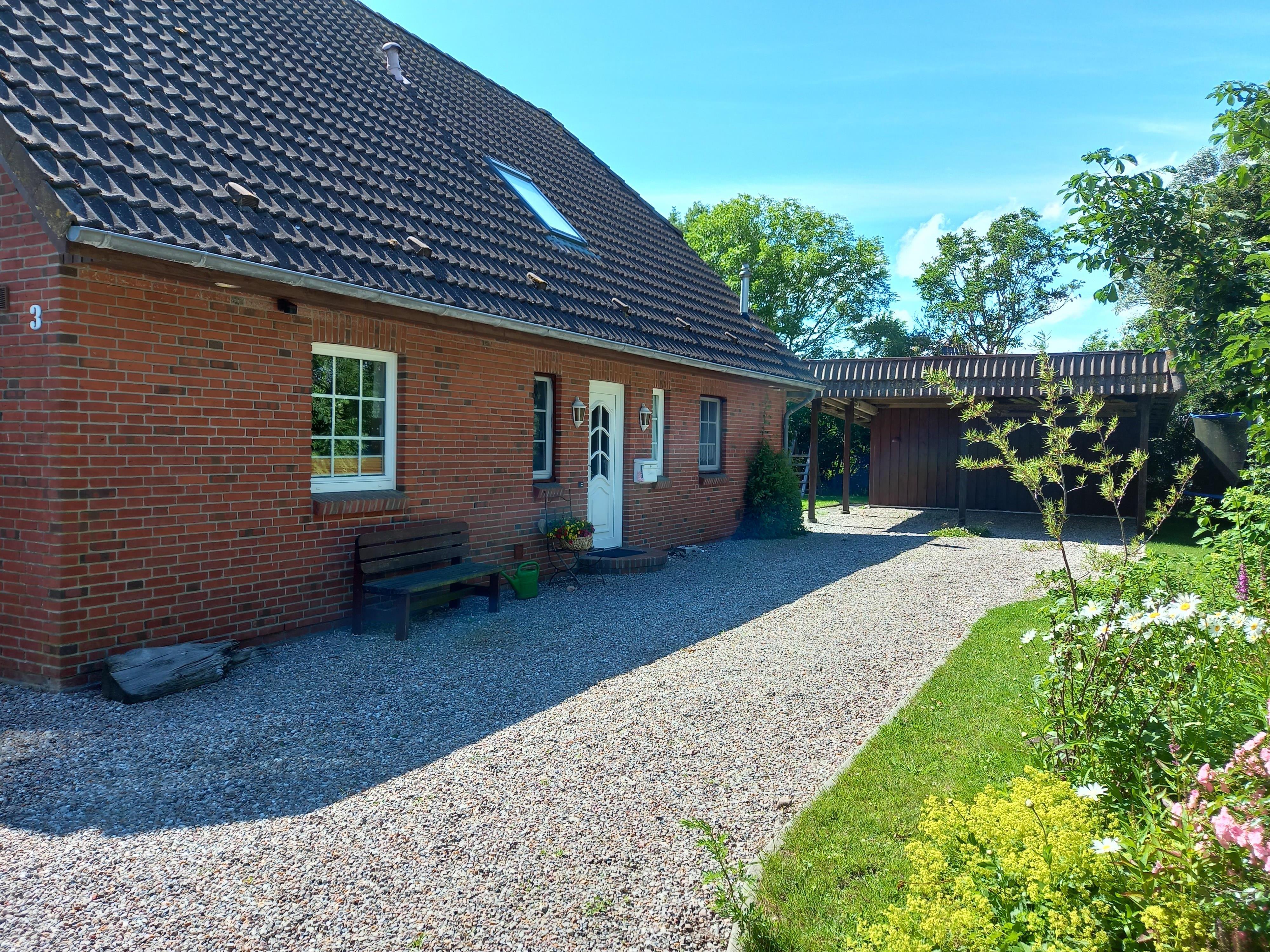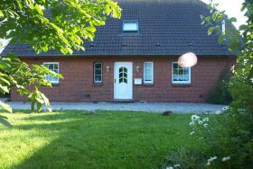 Schönen Urlaub - ganz nah am Meer! Das bietet unser Haus in Westerhever an Schleswig-Holsteins schöner Westküste, mit Blick zum Leuchtturm Westerheversand und großem Naturgarten. Verbringen Sie die kostbarste Zeit des Jahres an einem besonderen Ort, auf Eiderstedt, in unmittelbarer Nähe zur Nordsee, der Seedeich nur 1 km Luftlinie entfernt. Spätestens, wenn Sie zum ersten Mal vom Wohnzimmer aus den Leuchtturm Westerheversand erblicken, beginnt für Sie ein besonderer Urlaub! Das naturnahe über 1.000 qm große Gartengrundstück grenzt direkt am Vogelschutzgebiet an. Mit Blickachse zum Leuchtturm und mit Bäumen und Büschen eingerahmt, vor den Blicken der Nachbarn gut geschützt, können Sie hier eine schöne Auszeit nehmen. Dafür stehen auf der Rasenfläche zwei Strandkörbe, Sonnenliegen, eine Gartenbank und für jede Wohneinheit auch eine Sitzgruppe bereit. Tisch und Gartenstühle können Sie frei im Garten plazieren, ob in der Sonne oder im Schatten und windgeschützt unter den Bäumen, je nach Wetterlage. Dazu ideale Spielmöglichkeiten für Kinder: Schaukelanlage, Sandkasten, Fußballtor und Trampolin stehen bereit, der Langeweile keine Chance!