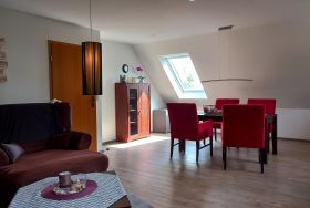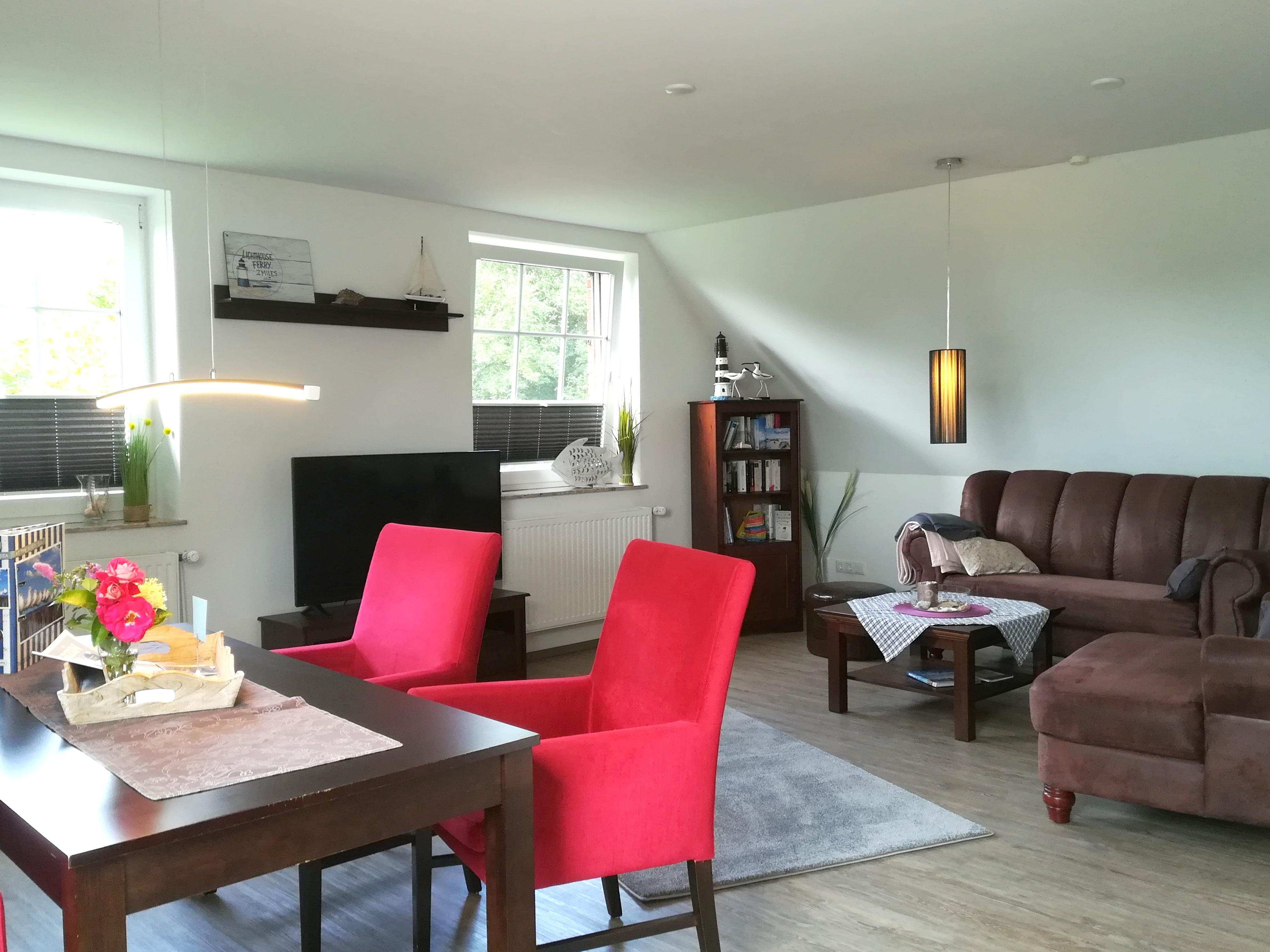 Herzlich Willkommen in Westerhever. Unsere Ferienwohnung Meer befindet sich im Obergeschoss und bietet auf 60 qm Platz für bis zu 4 Personen. Der liebevoll eingerichtete Wohnraum mit Sesseln und einem sehr gemütlichem XXL-Sesse, sowie einem Essplatz lädt zum Entspannen ein. Durch die Dachflächenfenster haben sie einen wunderschönen Ausblick über die Landschaft von Westerhever. Ihre Urlaubsküche ist komplett mit Geschirrspüler, Cerankochfeld, Backofen und allem was man für den Urlaubshaushalt braucht ausgestattet. Die beiden hellen Schlafräume sind je mit einem Doppelbett eingerichtet. Ein freundliches Tageslichtduschbad begrüßt Sie am Morgen.