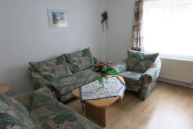 Ruhiges Wohnen im Erdgeschoß, nahe des historischen Dorfkernes Diese Wohnung befndet sich in der rechten Haushälfte und hat auch ausreichend Platz für 5 Personen. Sie verfügt über 2 Schlafräume ( 1x1Doppelbett 180x200; 1x Kinderzimmer mit einem Etagenbett und Einzelbett) Im geräumigen Wohnzimmer steht eine Couchgarnitur. Die Küche ist vollausgestattet, mit Gasherd/Gasofen, Geschirrspüler, sowie einem Kühlschrank mit integriertem Gefrierfach,... In der Küche befindet sich auch ein kostenloser Internetzugang. Im Garten stehen Ihnen eine möbilierte Terrasse zur Verfügung.