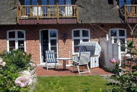 Das Reetdachhaus “Bi de Kark” ist ein Neubau nach historischem Vorbild (siehe rechts) und wurde im Frühjahr 2003 fertiggestellt. Das aufwendig hergestellte Gebäude mit traditionellem Mauerwerk im Kreuzverband, dem wuchtigen Reetdach, handgeschmiedeten Mauerankern, stilechten Holzfenstern und Mauerziegeln aus dem 19. Jahrhundert vermitteln einen exklusiven Wohnort. Die Lage am alten Deich nahe Marktplatz, Kirche, Heimatmuseum, Reithalle, Dünen und Strand sowie die unmittelbare Nähe zu attraktiven Läden, urigen Kneipen, gemütlichen Cafés und ausgezeichneten Restaurants ist einzigartig.