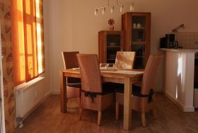 Wir vermieten eine Ferienwohnung für Nichtraucher im Erdgeschoss dieses Hauses mit einer grossen Südterrasse und insgesamt 73 m². Die Wohnung für den geruhsamen Urlaub in Strandnähe und dennoch mitten im Ort “Dorf” in ruhiger Lage hat 3 Zimmer, eine Kochecke und ein Bad mit WC und Dusche. Das Wohnzimmer hat neben der Essecke mit 4 Stühlen und natürlich auch Kabel-TV-Gerät, DVD und Stereoanlage.Ebenso verfügt die Wohnung über einen Telefon/Internetanschluß (kostenfreies W-Lan).