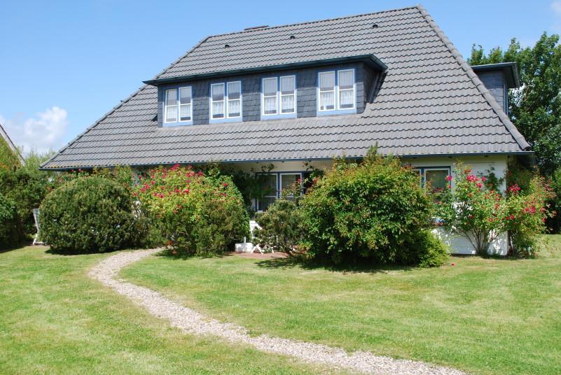 Tischgruppen und Liegen auf den Südterrassen und auf dem großen Rasen sowie zwei Strandkörbe bieten Gelegenheit zum Sonnenbaden oder geselligen Plausch. Jeder Wohnung steht ein reservierter Parkplatz auf dem Grundstück zur Verfügung.