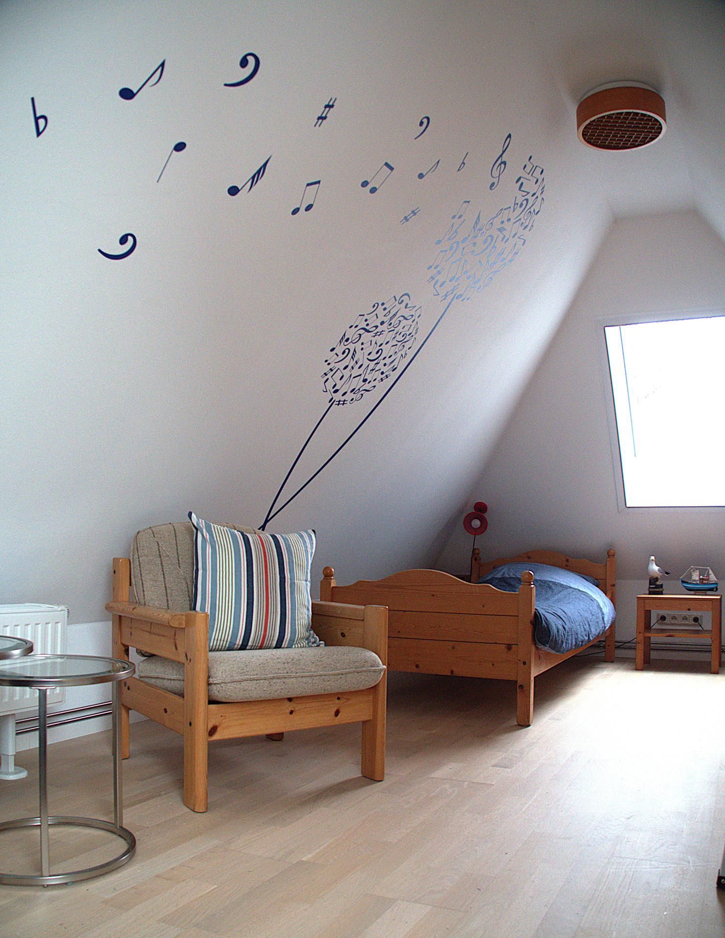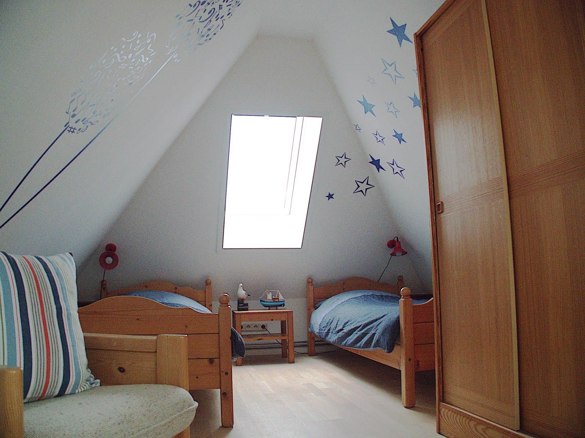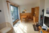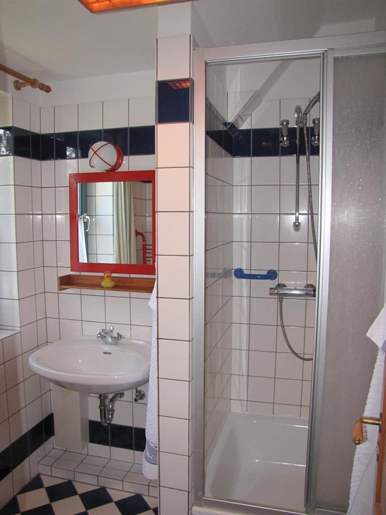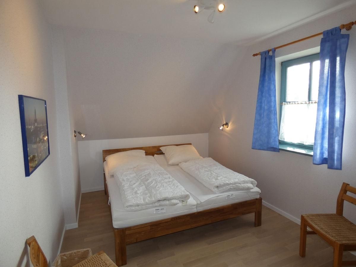 Die Wohnung Rico im Obergeschoß verteilt sich über 2 Etagen auf 75qm. Im Obergeschoß finden Sie einen Wohnschlafraum mit Schlafcouch, Sitz- und Essecke, dänischem Kaminofen, sowie eine sonnige Fensterfront mit Ausgang zum Balkon vor. Die Ferienwohnung ist im skandinavischen Stil mit einer separaten Küche, Insektenschutzfenstern, einem Duschbad, sowie einem separatem WC ausgestattet. Ein Schlafzimmer mit einem Doppelbett läst zum Schlummern ein. Ein weiterer Schlafraum mit 2 Einzelbetten und Kindergitter (ein dritter Schlafplatz wäre hier möglich), einem Couchtisch und zwei Sesseln ist über die Wendeltreppe im Dachgeschoß erreichbar. Bettwäsche und Handtücher sind auf Anfrage mietbar.