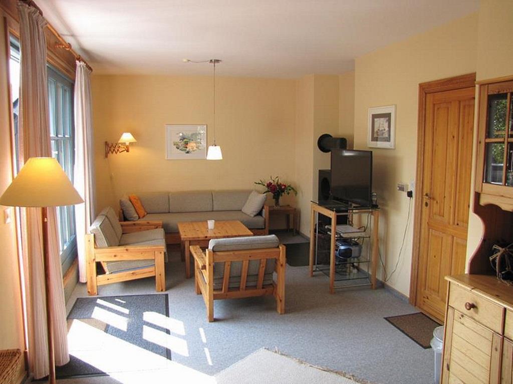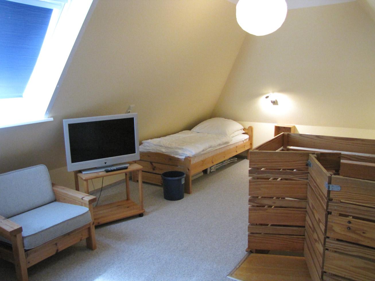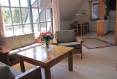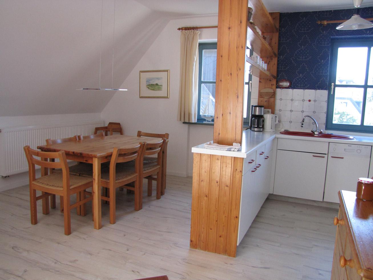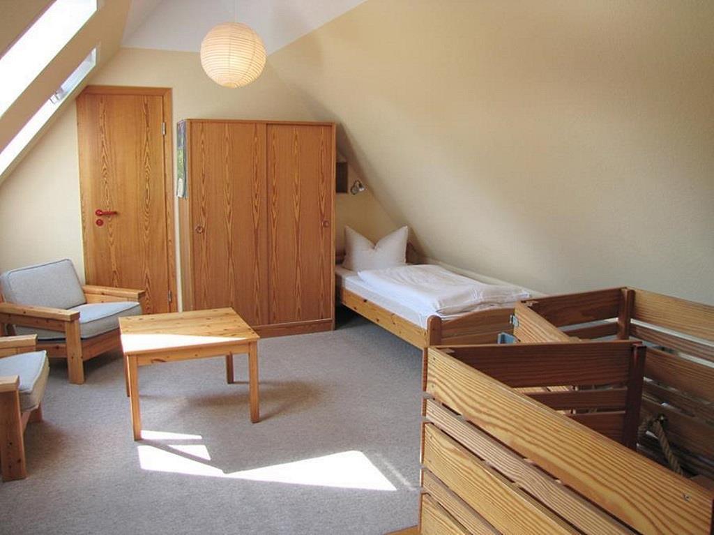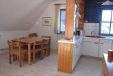 Die Wohnung Anka III im Obergeschoß verteilt sich über 2 Etagen auf 85qm. Im Obergeschoß finden Sie einen Wohnschlafraum mit Schlafcouch, Sitz- und Essecke, dänischem Kaminofen, sowie eine sonnige Fensterfront mit Ausgang zum Balkon vor. Die Ferienwohnung ist im skandinavischen Stil mit einer offenen Küche, einem Tresenbereich, Insektenschutzfenstern, einem Duschbad, sowie einem separatem WC ausgestattet. Ein Schlafzimmer mit einem Doppelbett lädt zum Schlummern ein. Ein weiterer Schlafraum mit 3 Einzelbetten und Kindergitter (ein Kinderbett wäre hier zusätzlich aufstellbar), einem Couchtisch und zwei Sesseln ist über die Wendeltreppe im Dachgeschoß erreichbar. Bettwäsche und Handtücher sind auf Anfrage mietbar.