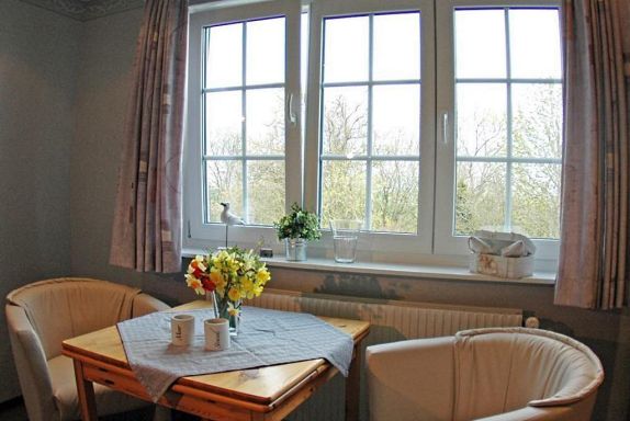 Die Wohnung Heisternest für 2 Personen befindet sich im Obergeschoß und ist ca. 35 qm groß. Der Wohnraum ist ausgestattet mit 2 Sesseln und einem Tisch, Flachbild-TV und Radio sowie großer Schlafnische mit einem Doppelbett. Die separate Küche beinhaltet Toaster, Kaffeemaschine, Mixer, Mikrowelle sowie Herd mit Backofen und Ceranfeld. Die Wohnung verfügt über ein neues Duschbad. Zum Sonnen und Faulenzen gibt es separate, idyllisch gelegene Terrassen mit Strandkörben und Gartenmöbeln im großen, gepflegten Garten.