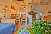 Wohnung im 1. Obergeschoss mit ca. 54 m² und Gartenblick. Geeignet für 4 Personen. Hunde sind in dieser Wohnung nicht erlaubt. Die Nichtraucher-Ferienwohnung ist ausgestattet mit SAT-TV, W-LAN auf Wunsch, Küchenzeile mit 4-Platten-Herd und Backofen, Geschirrspüler, Kühlschrank mit Gefrierfach, Kaffeemaschine, Toaster und Wasserkocher. Badezimmer mit Dusche, WC und Waschbecken. Im separaten Schlafzimmer befinden sich ein Doppelbett. Im Wohnraum kann die Couch zusätzlich als Schlafmöglichkeit verwendet werden. Kinderbett und Hochstuhl sind vorhanden.