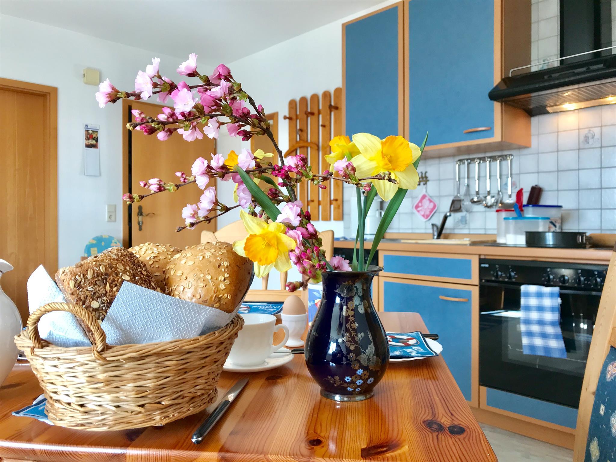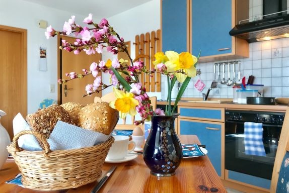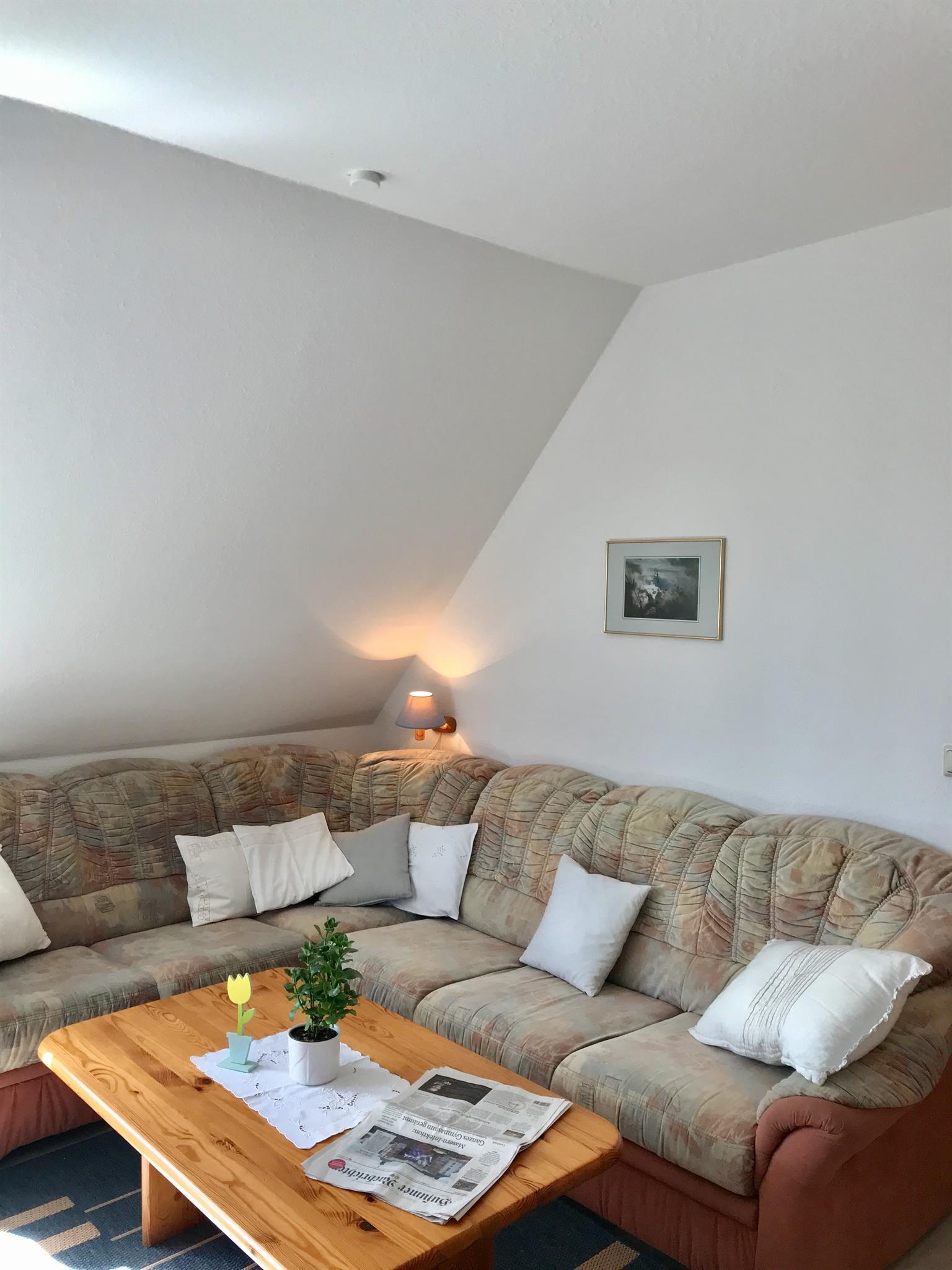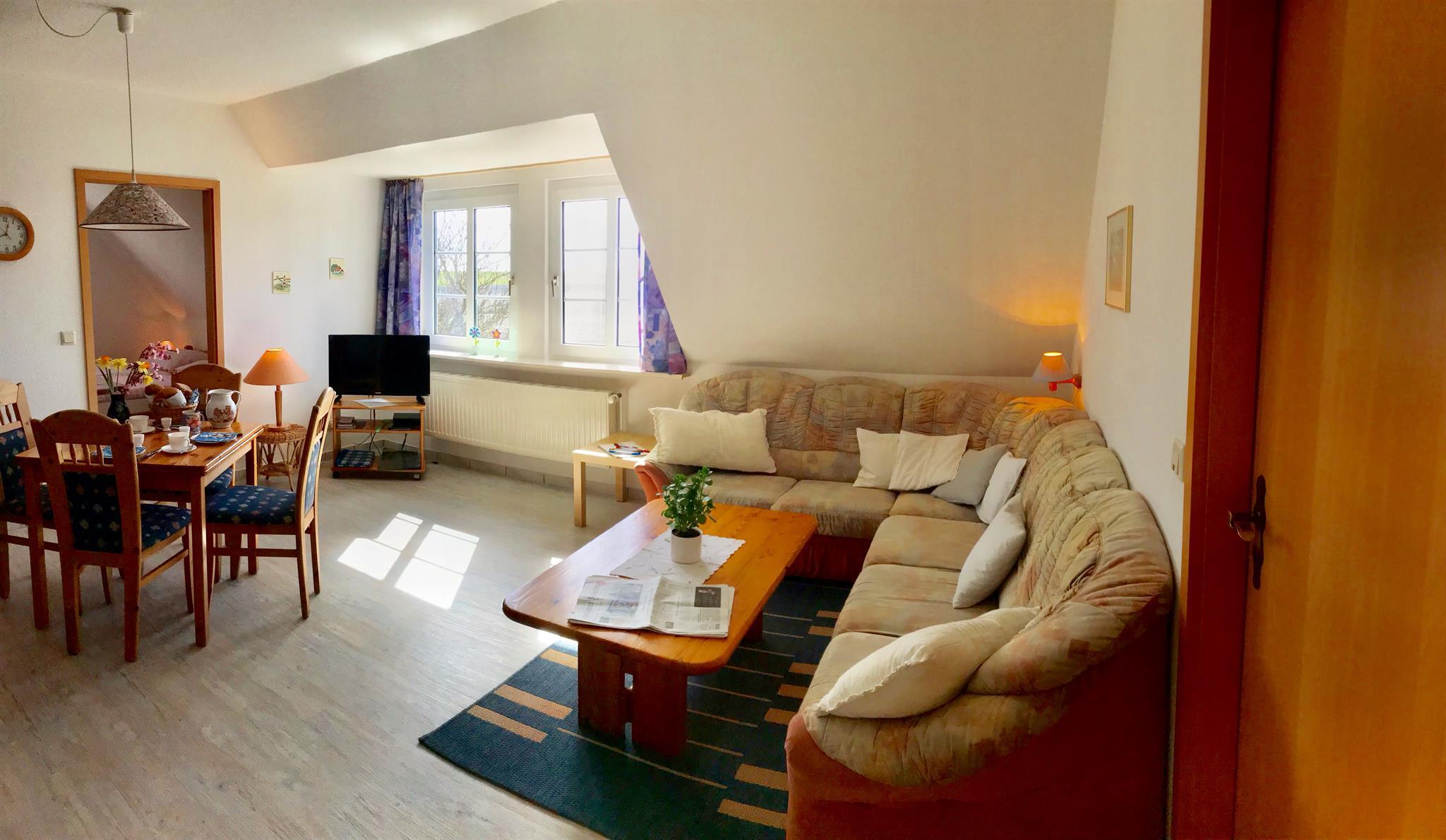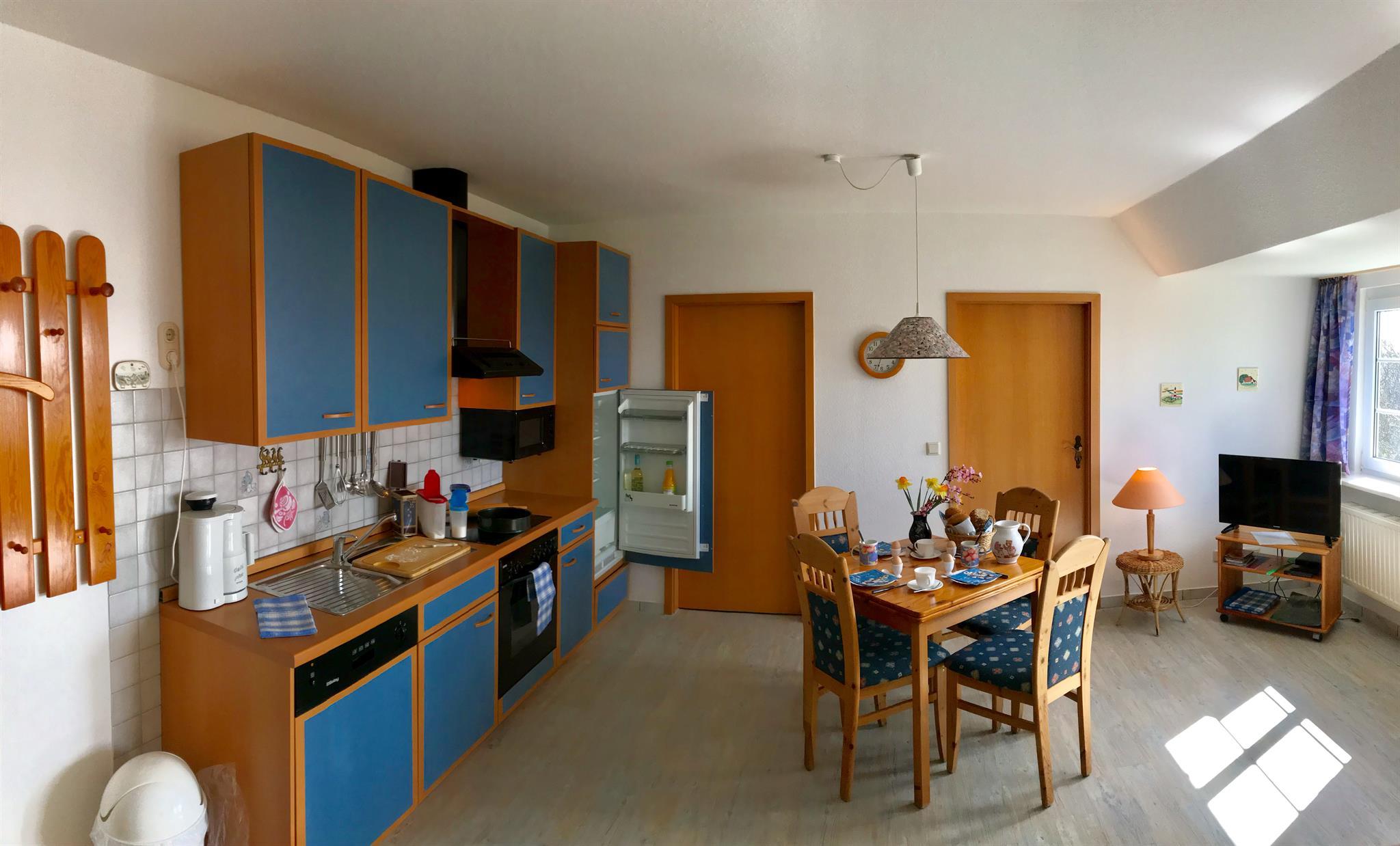 Die Ferienwohnung bietet 2 Schlafzimmer auf 50 qm, ein Duschbad und ein Großzügigen Wohn-, Koch- und Essbereich. Kinderbetten oder Zustellbetten lassen sich zusätzlich unterbringen. Die Küchenzeile ist komplett ausgestattet (Kühlschrank,Herd, Microwelle, Geschirrspühler, etc.). Sat-TV ist vorhanden.Waschmaschine und Wäschetrockner stehen bei Bedarf zur Verfügung.