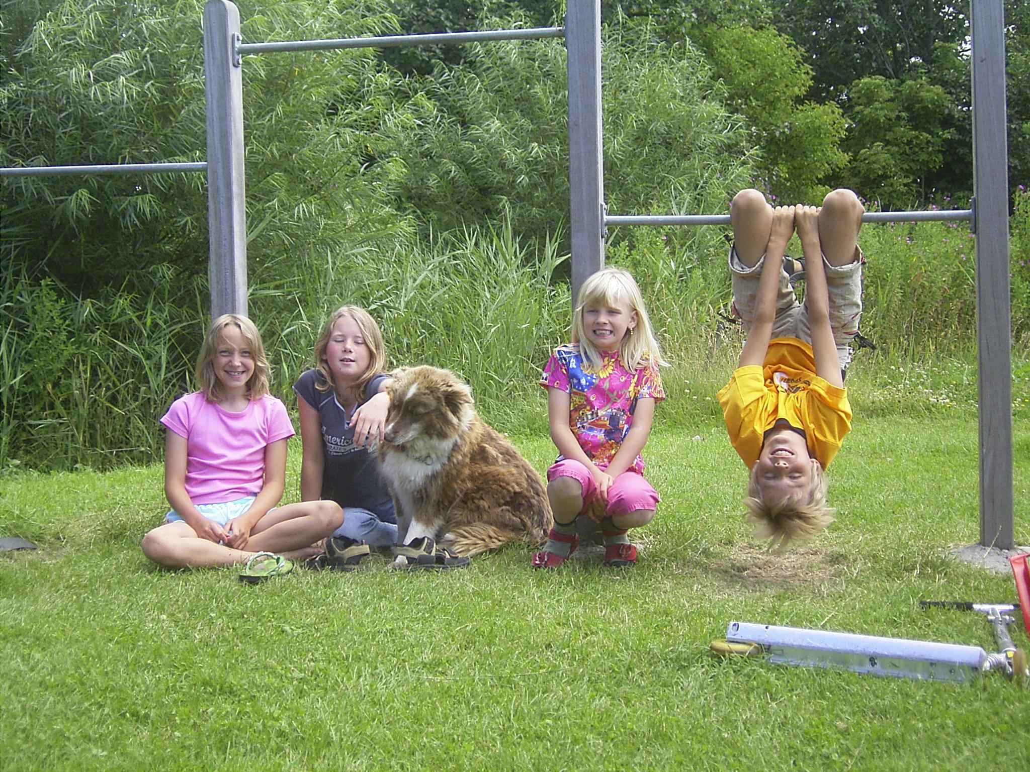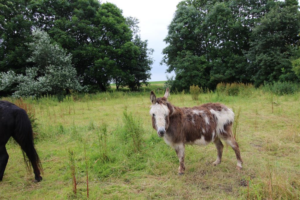 Außerdem haben wir Ponys und einen Esel, Ziegen, Kaninchen und viele Katzen.