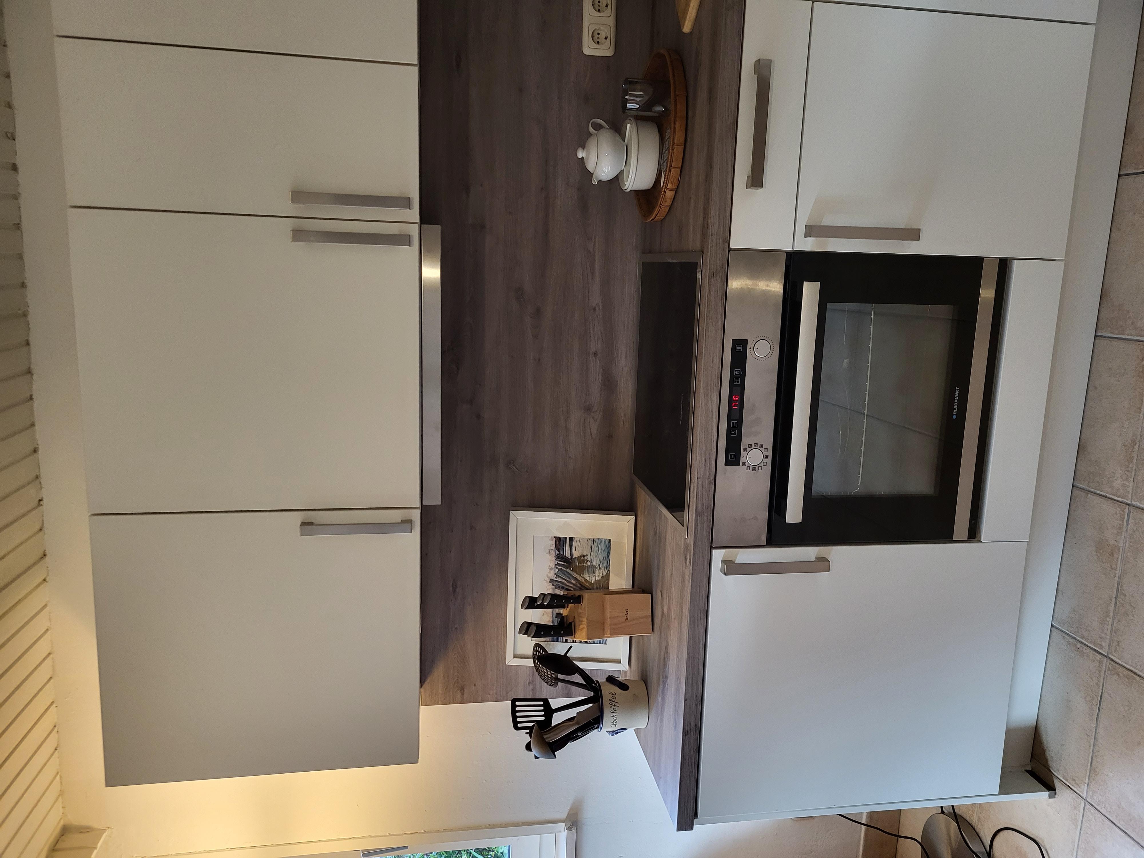 Es wurde der ganze Wohnbereich neu gestaltet und mit einer modernen Wohnküche mit schönen Küchenmöbeln und neuen Geräten ausgestattet. Zu der Ausstattung gehören sämtliche elektrischen Größ- und Kleingeräte. Der schön gestaltete Essbereich läd zum ausgedehnten Frühstücken im Urlaub ein.
