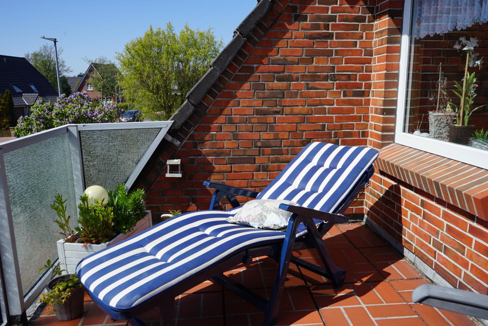 Zur Mitbenutzung und zum Verweilen steht Ihnen ein mit Gartenmöbeln ausgestatteter Sonnen-Balkon (nach Westen ausgerichtet) zur Verfügung.