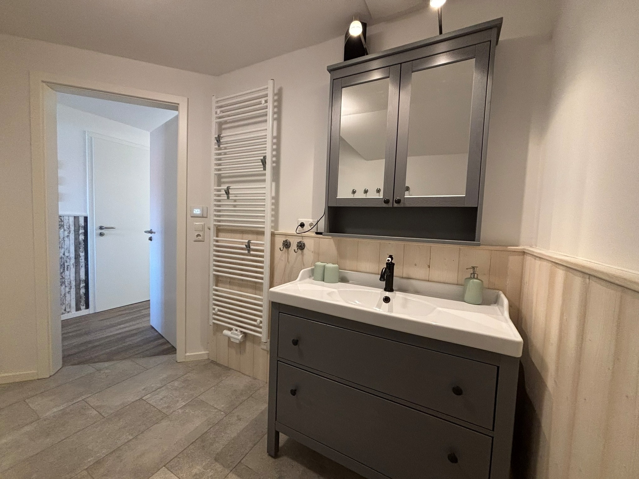 Das geräumige Bad ist funktional gestaltet, verfügt über eine Bodenebene Dusche und überzeugt mit seiner modernen Ausstattung. Die großzügige Küche lässt keine Wünsche offen und bietet genügend Raum für kulinarische Abenteuer sowie für gesellige Momente mit Familie und Freunden.