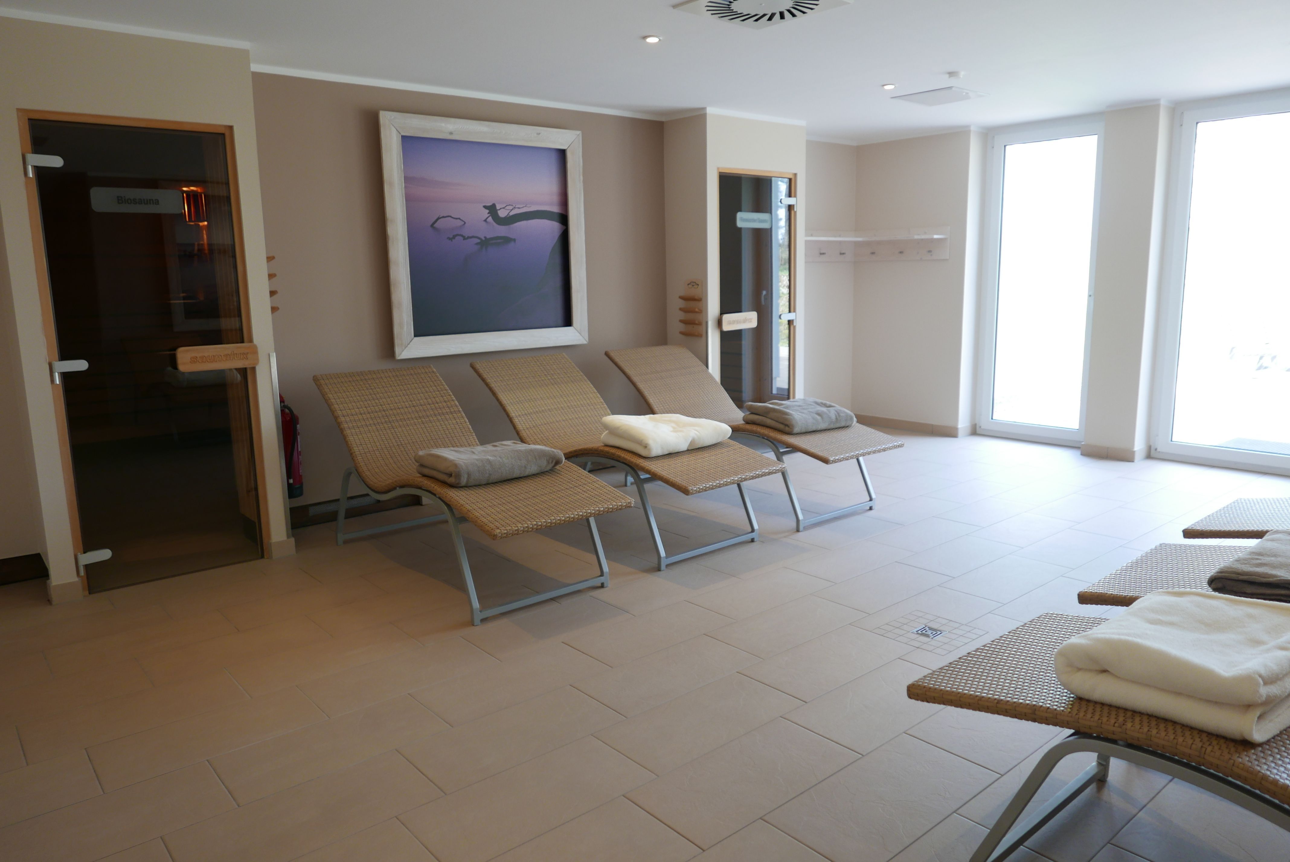 Von hier müssen Sie nur kurz den Weg über das Grundstück und schon sind sie direkt am Strand. Das Haus ist mit einem Lift, einer Tiefgarage und einem großen Wellnessbereich mit Schwimmbad (ca. 8,00 m x 4,00 m - 1,35 m tief), zwei Saunen (eine finnische Sauna/eine Bio-Sauna) und einem Massagebereich ausgestattet. Der Wellnessbereich ist ganzjährig geöffnet. Im Souterrain befindet sich ein Waschmaschinenraum gegen Gebühr.