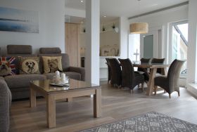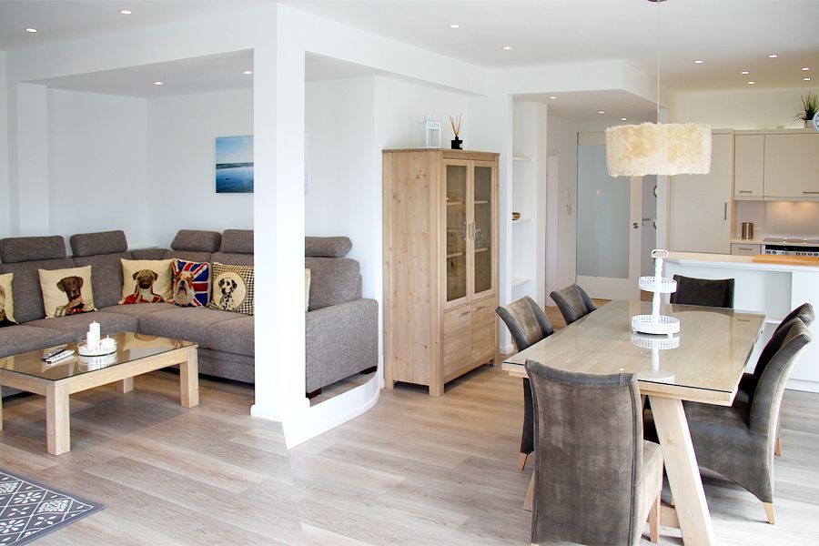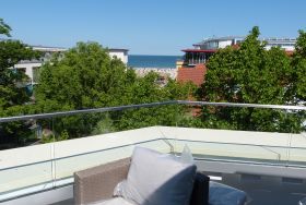 In dieser 4 Zimmer Luxus Wohnung können sie eine wunderschöne Sonnenterrasse mit Meerblick genießen. Im 4. Obergeschoß dieser Penthouse-Ferienwohnung herrscht ein gehobenes Ambiente. Ob 2 Badezimmer, Garagenplatz, WLAN, Loungeterrassenmöbel (saisonbedingt Mai bis September), Fußbodenheizung, Geschirrspülmaschine oder andere besondere Details, alles ist vorhanden.