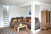 Abgerundet wird der Komfort durch einen Garagenplatz am Haus und einen Lift bis zur 3. Etage, die letzte Etappe zur Wohnung führt über eine Treppe. Nach Öffnen der Wohnungstür erreichen Sie den Wohnbereich über eine Wendeltreppe.