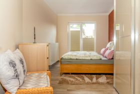 Die Ferienwohnung Kunstmann in Ribnitz-Damgarten bietet den perfekten Urlaubsort für bis zu 4 Personen. Diese gemütliche Erdgeschosswohnung in einem Zweifamilienhaus besticht durch Komfort und eine persönliche Note, die den Aufenthalt besonders angenehm macht. Im Wohnzimmer könnt ihr es euch auf bequemen Sitzmöbeln gemütlich machen, gemeinsam entspannen oder eure Lieblingssendungen im TV verfolgen. Das Schlafzimmer ist mit einem großzügigen Doppelbett ausgestattet und die separate, voll ausgestattete Küche bietet alles, was ihr für die Zubereitung leckerer Mahlzeiten braucht. Das Badezimmer verfügt über eine Dusche und ein WC und rundet die Ausstattung der Wohnung ab. Draußen erwartet euch eine eigene Terrasse mit Grill, die sich ideal für entspannte Abende oder ein geselliges Essen im Freien eignet. Fahrräder könnt ihr sicher im abschließbaren Fahrradraum verstauen. Für zusätzlichen Komfort sorgt das besondere Angebot des Vermieters: Auf Wunsch könnt ihr euch mit einem gefüllten Kühlschrank überraschen lassen oder euch vom nahegelegenen Bahnhof abholen lassen.