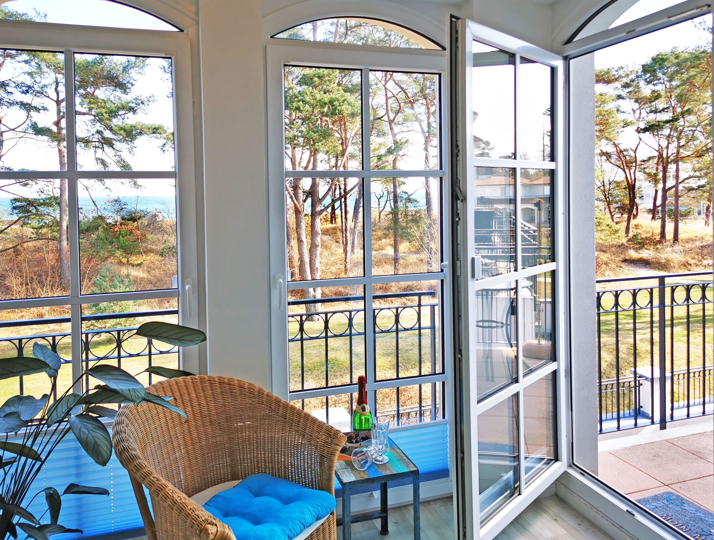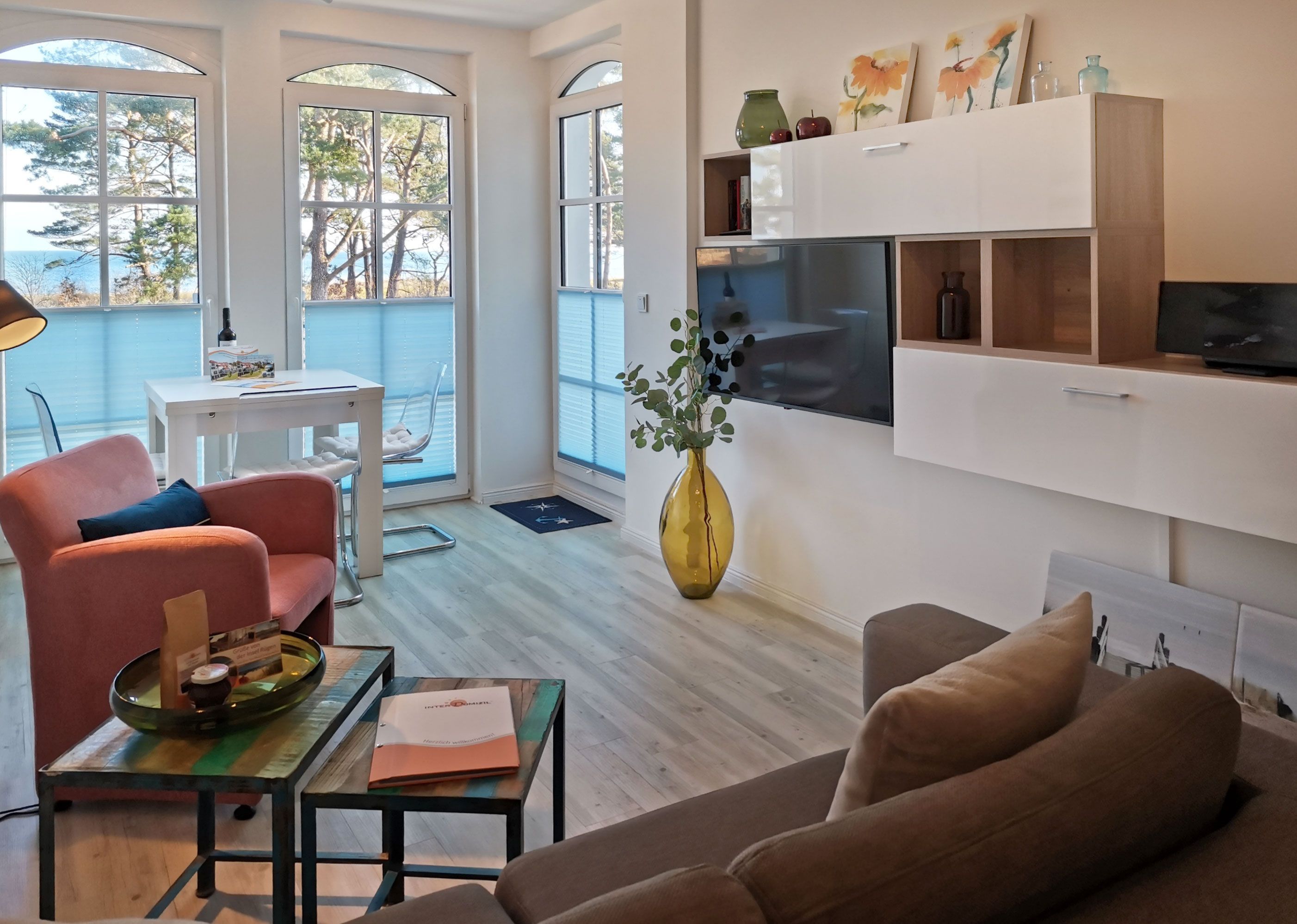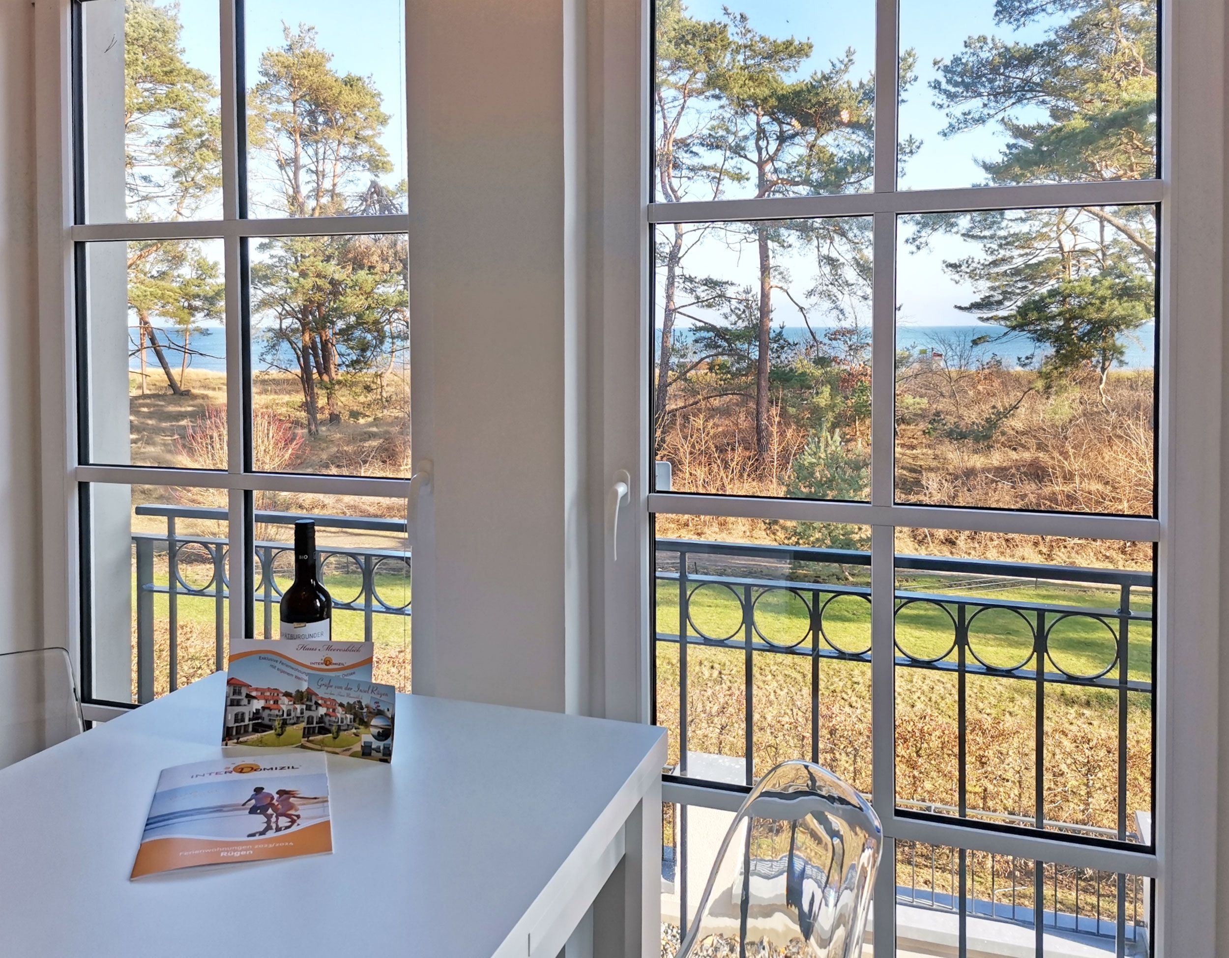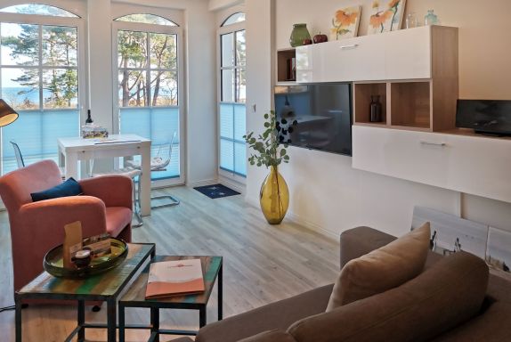 Genießen Sie den Blick auf das Meer von dieser kleinen aber feinen Ferienwohnung für bis zu 3 Personen. Sie liegt im 2013 fertiggestellten Haus Meeresblick. Die Ferienresidenz hat einen direkten Zugang zum Strand. Das Haus ist mit einem Fahrstuhl, einer Tiefgarage und einem großen Wellnessbereich mit Schwimmbad (ca. 8,00 m x 4,00 m - 1,35 m tief), zwei Saunen (eine finnische Sauna/eine Bio-Sauna) und einem Massagebereich ausgestattet.