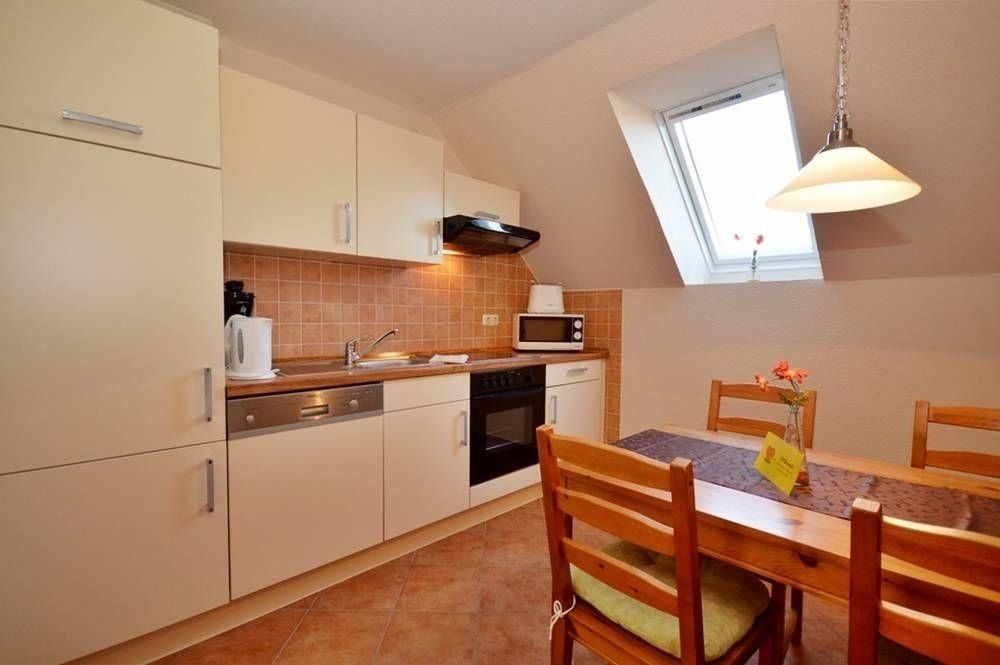 Die Einbauküche ist gut ausgestattet wird es Ihnen an nichts fehlen. So stehen Ihnen zum Beispiel ein Geschirrspüler, Glaskeramik-Kochfeld, Einbauherd, Kühlschrank mit Gefrierfach, Mikrowelle, Kaffeemaschine, Kapselmaschine Nespresso, Wasserkocher, Eierkocher, Toaster zur Verfügung.