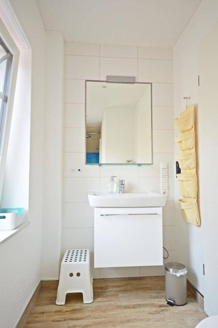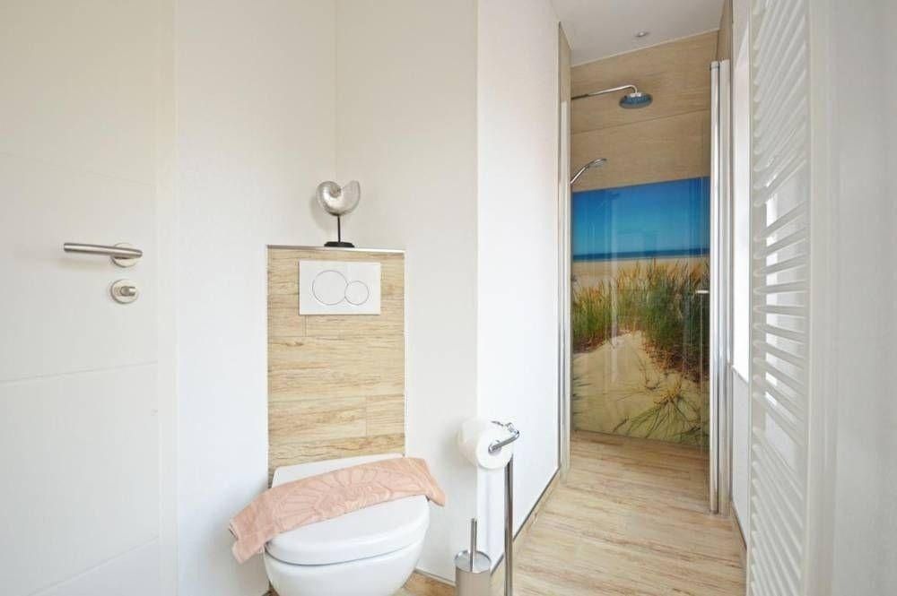 Hereinspaziert in die Neubaudoppelhaushälfte in Norden! Im Eingangsbereich befindet sich der Windfang, der Platz für Garderobe & Schuhe bietet. Von hier aus gelangt man auch zum Gäste-WC.