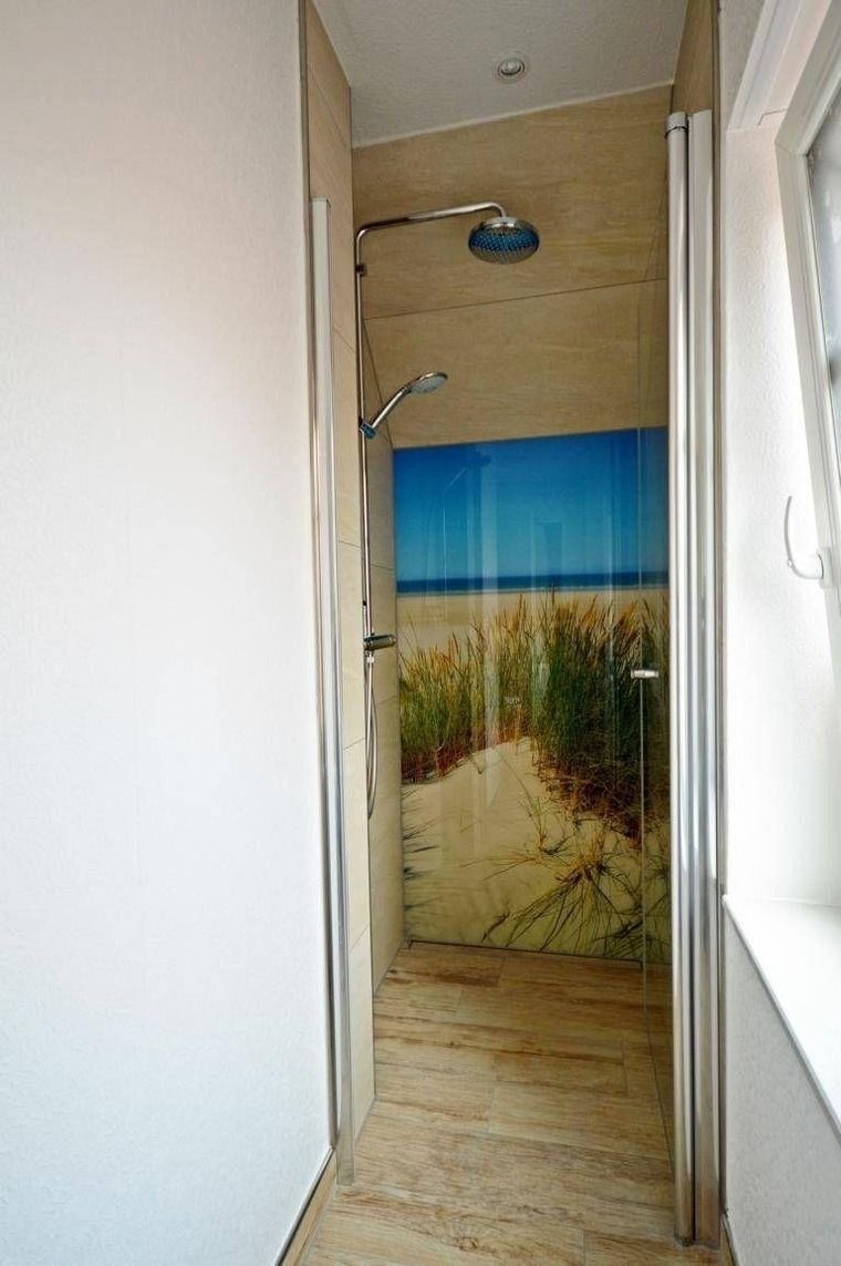 Im Obergeschoss befinden sich zwei Schlafzimmer und ein Bad mit begehbarer Dusche.
