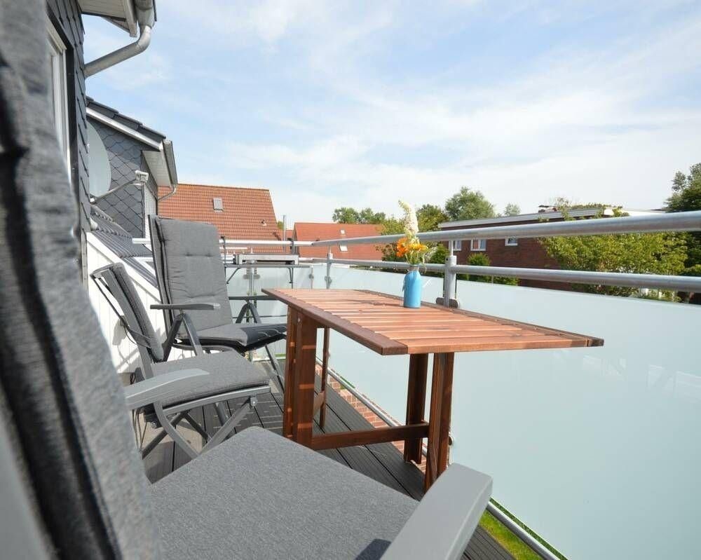 Gemütliche strandnahe Ferienwohnung im 1.Stock mit Balkon im Zentrum von Norddeich für 4 plus Baby