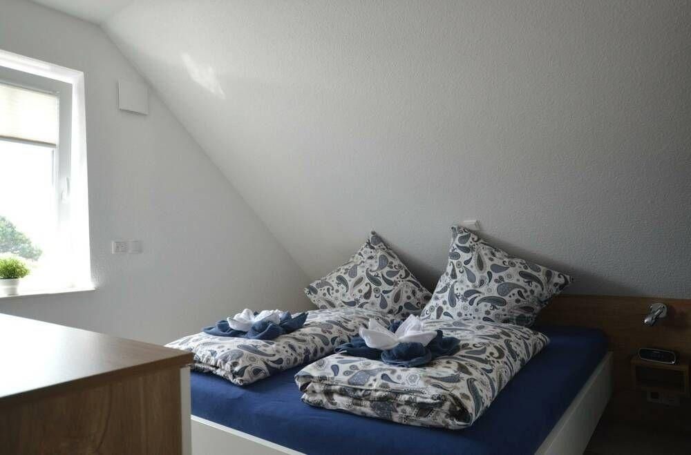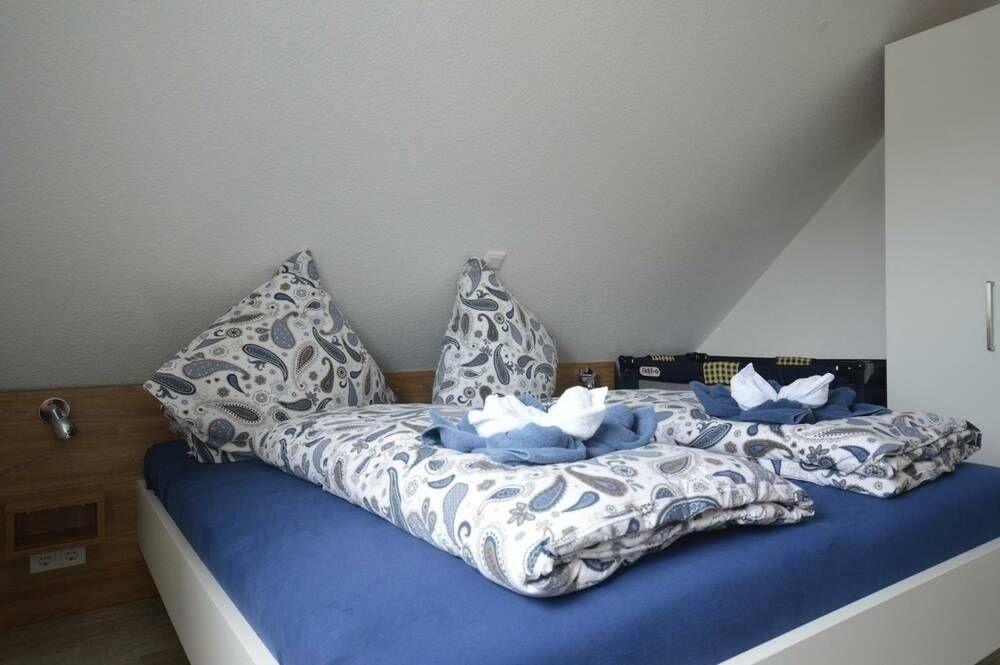 Zur Nachtruhe lädt das Schlafzimmer mit Doppelbett ein. Hier ist ein TV-Gerät, sowie Kommode und Kleiderschrank ebenfalls vorhanden.