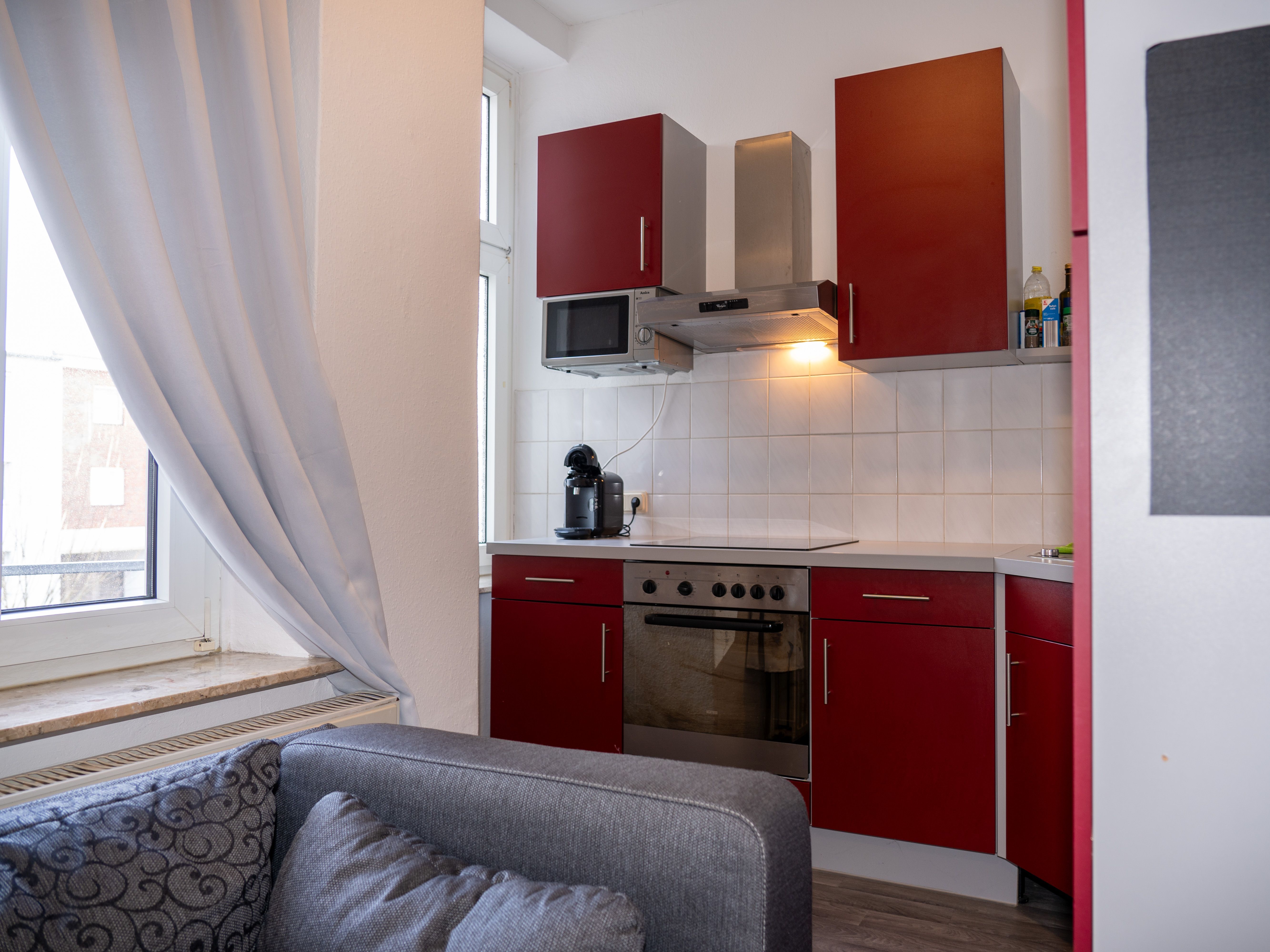Lichtdurchflutete Ferienwohnung mit einem großen Wohn/Schlafraum und Balkon, ebenerdig, im ersten Obergeschoss eines Mehrfamilienhauses im Stadtteil von Heppens bietet mit 55 qm Platz für 3 Personen mit Baby. In unmittelbarer Umgebung befinden sich mehrere Lebensmittelgeschäfte, Restaurants, Bäcker, Banken und weiterer Einzelhandel. Von hier aus sind es nur wenige Kilometer zur Innenstadt und zum Südstrand sowie zu den touristischen Highlights von Wilhelmshaven. Es ist genügend öffentlicher Parkraum vorhanden. WLAN ist selbstverständlich für diese Wohnung, ebenso wie ein kontaktloser Check In. Hunde sind willkommen, bedürfen aber der Nachfrage.