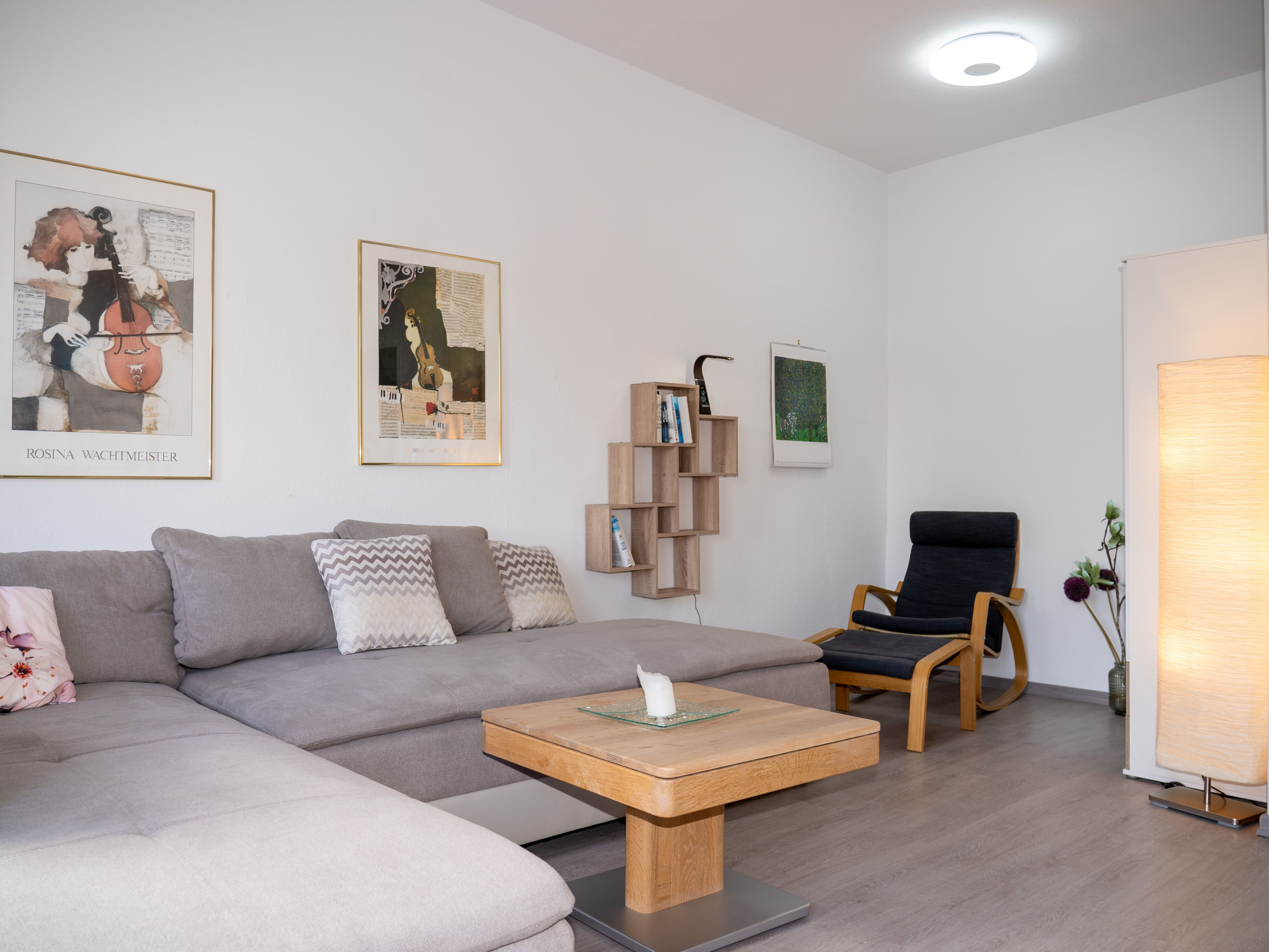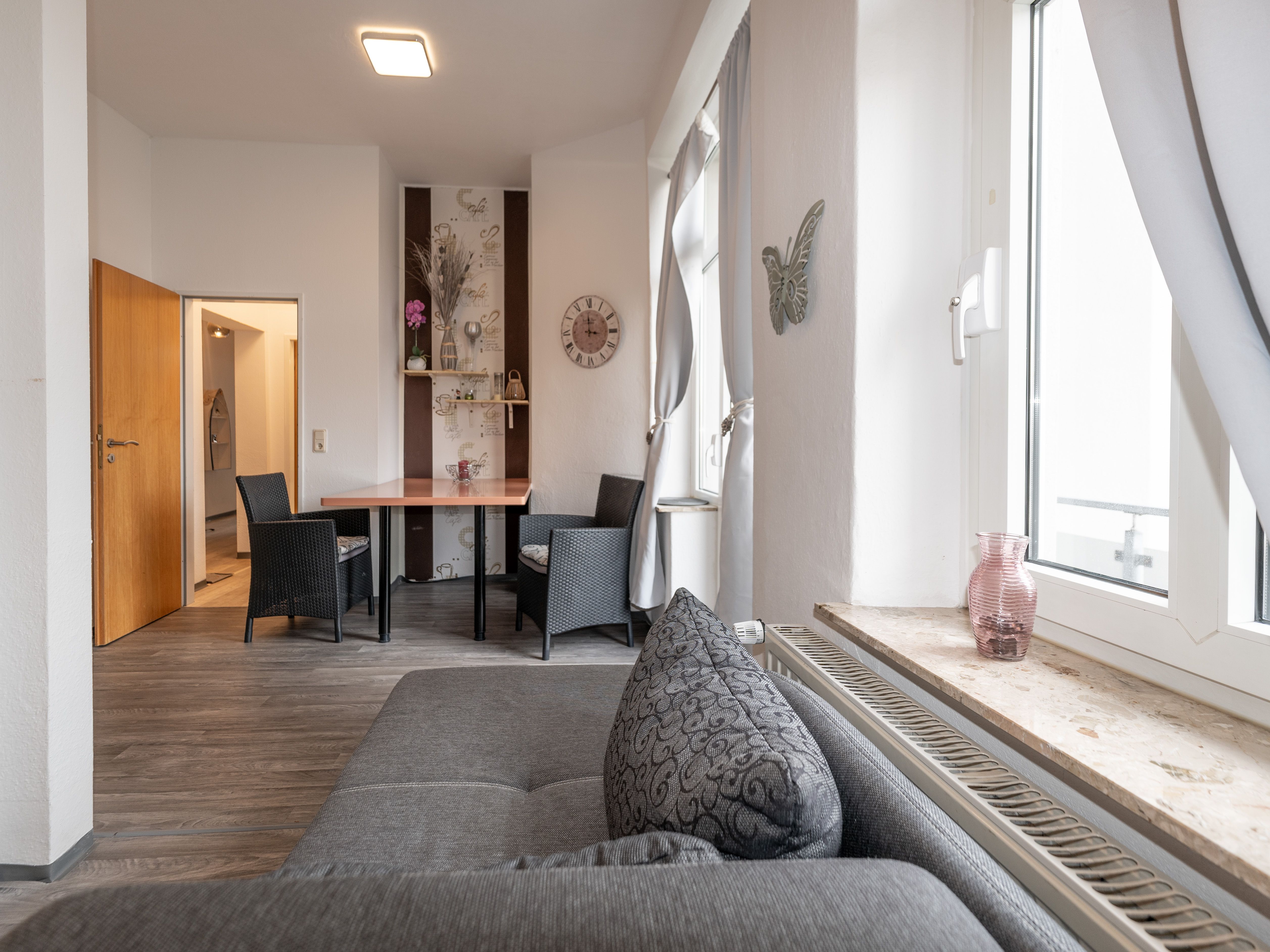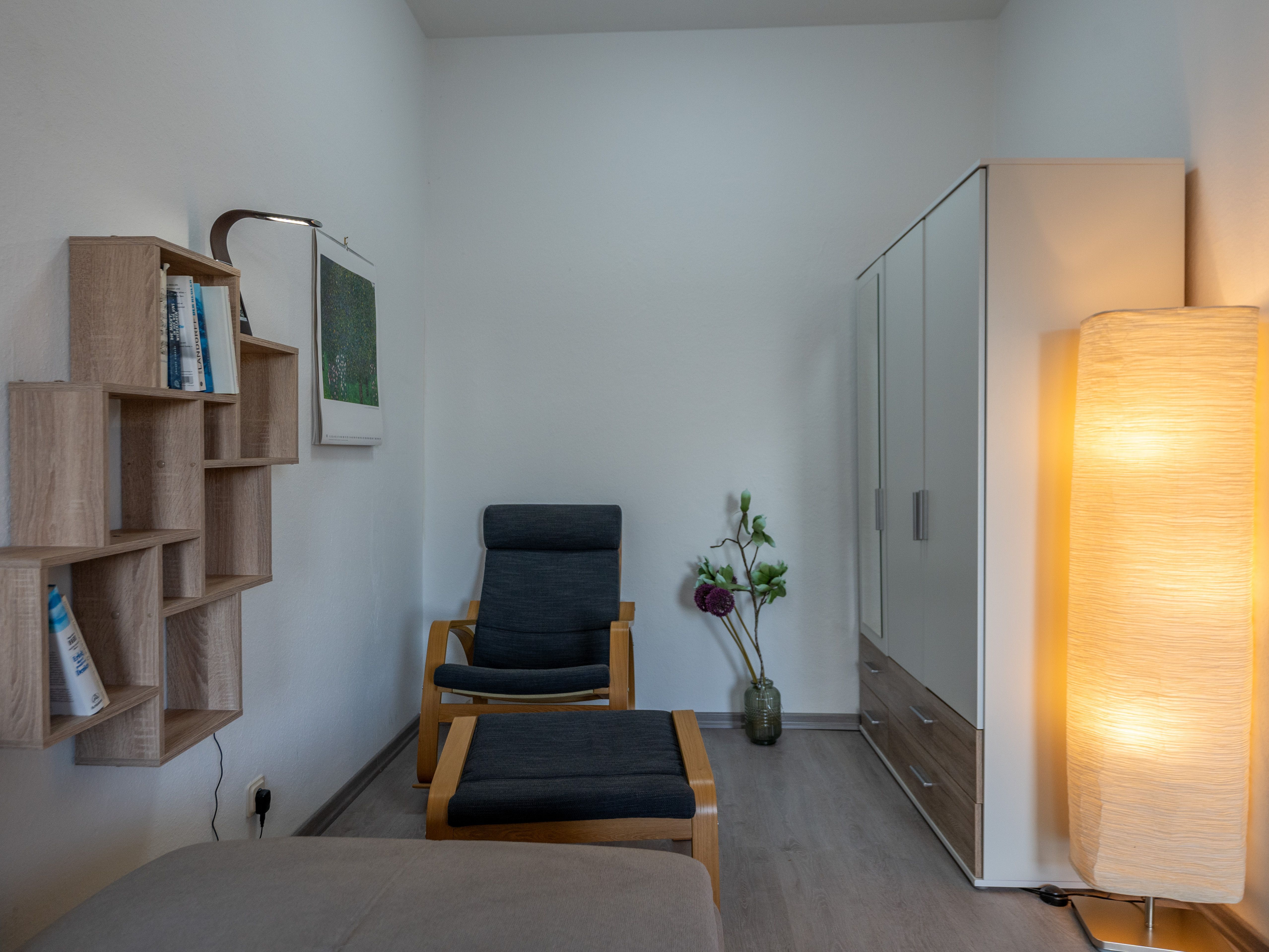 Die Wohnung ist mit einem großen Wohn/Schlafraum ausgestattet. Die Sofalandschaft lässt sich problemlos zu einem großen, bequemen Doppelbett zusammenschieben. Ein Kinderreisebett ohne weitere Ausstattung ist ebenfalls vorhanden. Eine kleine Leseecke hat in diesem großzügigen Wohnraum ebenfalls einen Platz gefunden. Kabel-TV, Apple-TV und WLAN stehen Ihnen zur Verfügung.