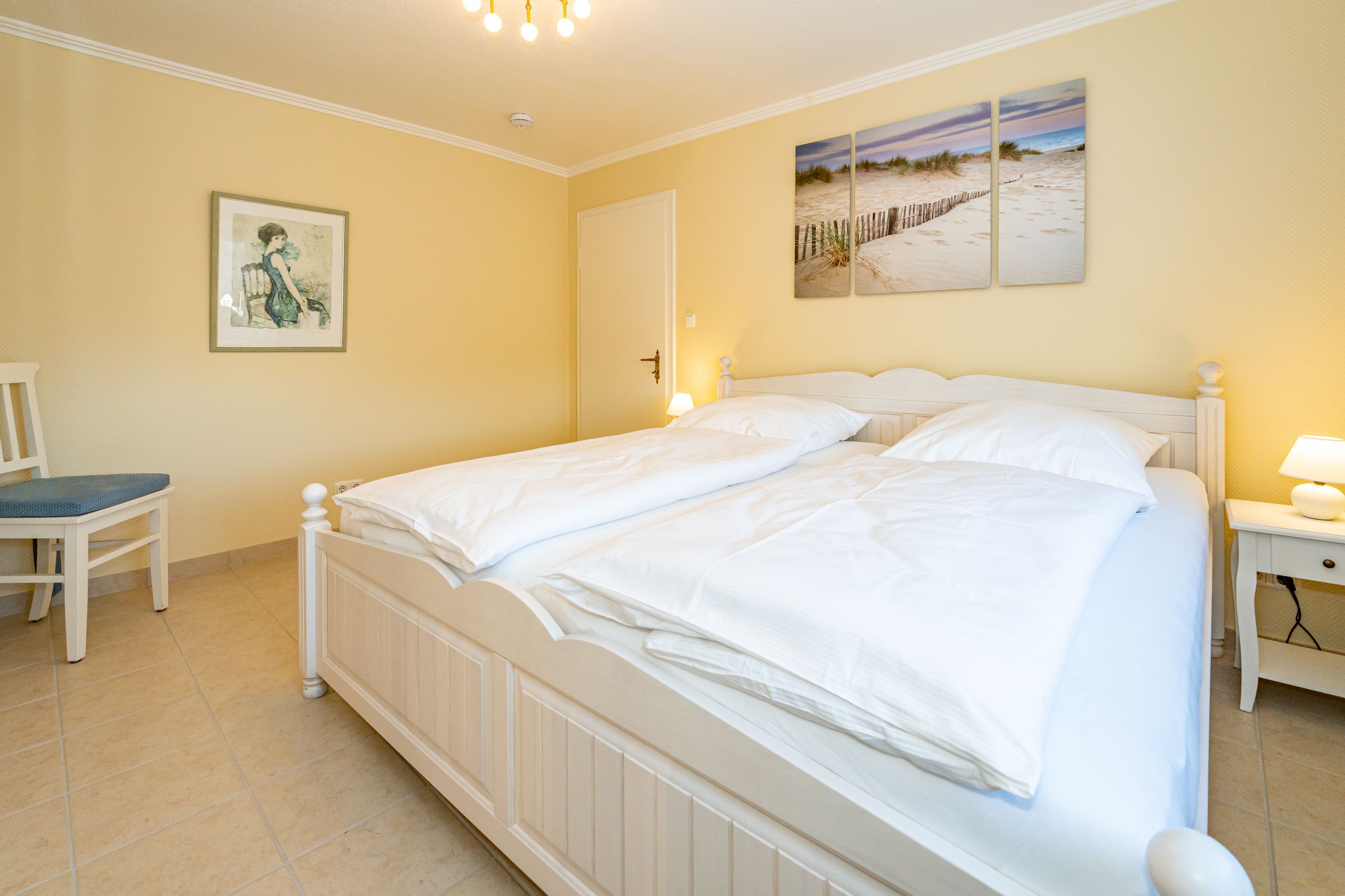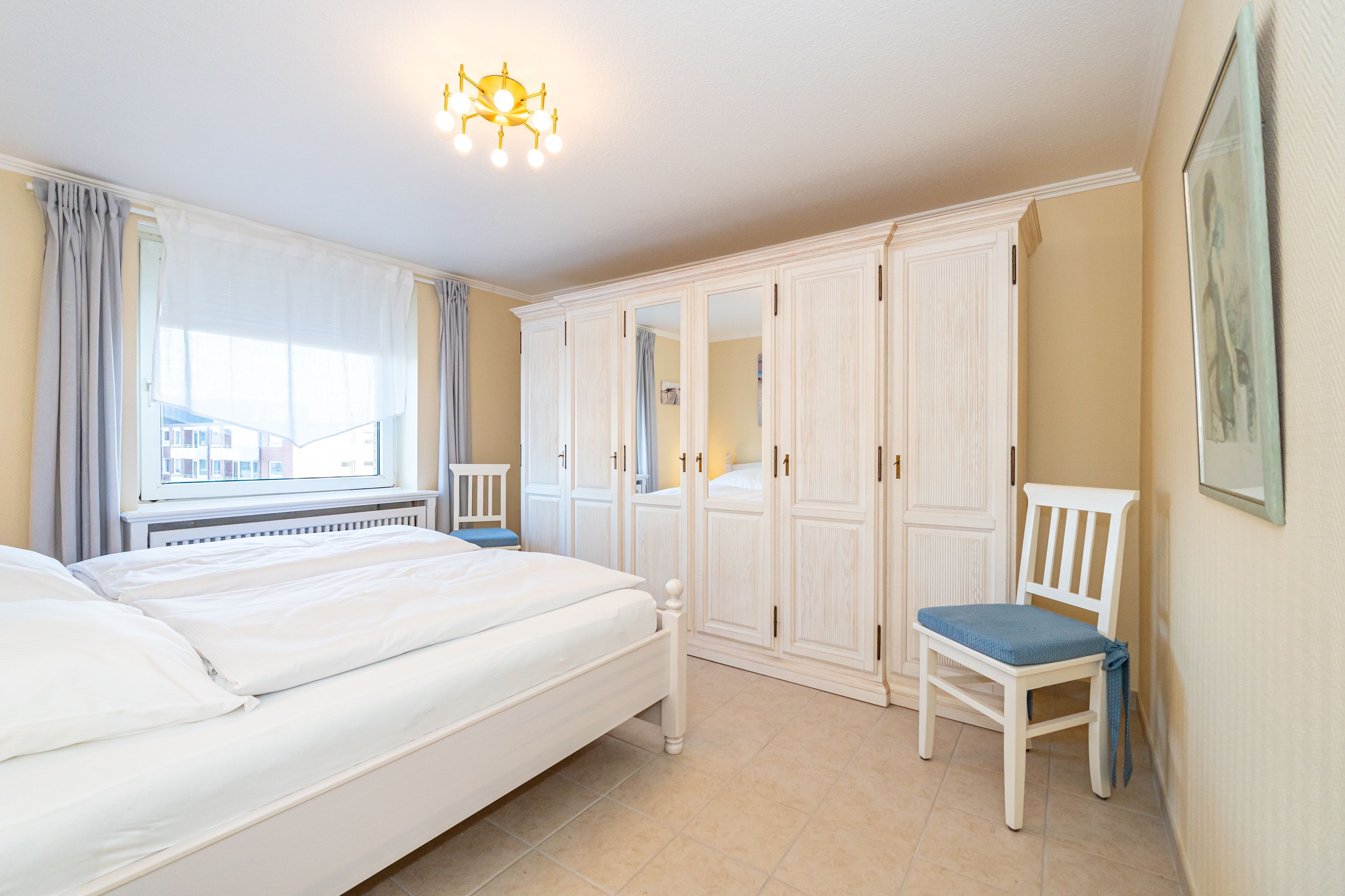 Das Schlafzimmer besitzt ein gutes Doppelbett in Übergröße (Liegefläche 2,00 x 2,00 m, Einzelmatratzen) und Kleiderschrank.