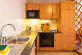 Die Ausstattung wird ergänzt durch eine voll ausgestattete offene Küche mit Wasserkocher, Kaffeemaschine, Toaster, Backofen, Mikrowelle und Tiefkühlfach.