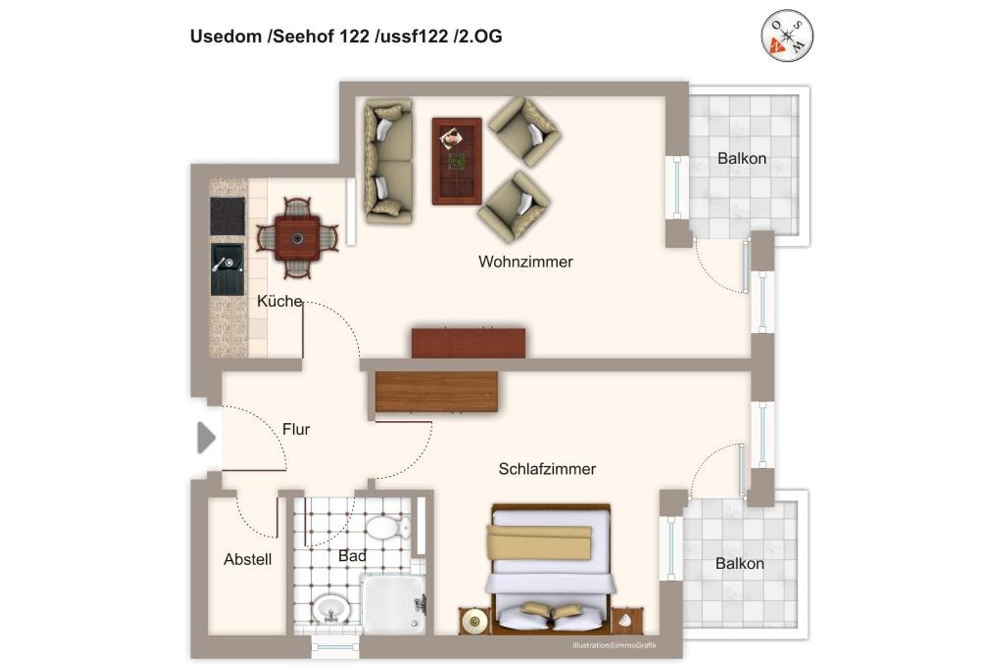 Auf der Südwest-Seite im Haus 1 befindet sich diese Ferienwohnung im 2. Obergeschoss der beliebten Ferienanlage Seehof.