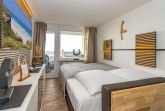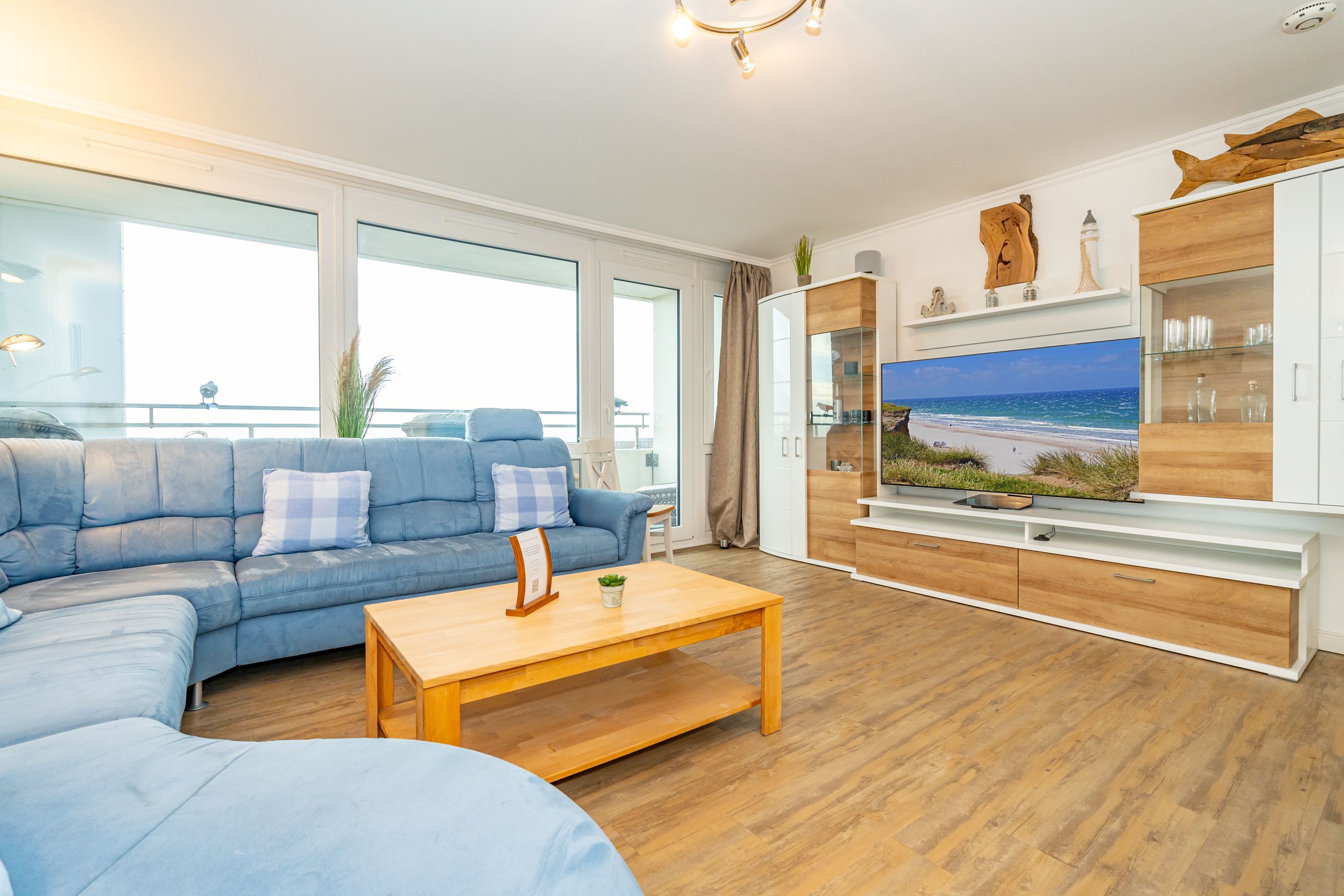 Das lichtdurchflutete Ferienapartment SYLTERBRISE, mit zwei zum Meer ausgerichteten Balkonen, befindet sich direkt an der Nordsee und ist Richtung Osten und Westen ausgerichtet. Der phänomenale Meerblick lässt sogar die Erdkrümmung erkennen. Diese traumhafte Konstellation gewährleistet unzählige Sonnenstunden aus der 5. Etage mit einem bezaubernden Blick auf die Nordsee, inkl. phänomenaler Sonnenuntergänge, die zum festen Bestandteil am Abend werden. Sie wohnen in einem großzügigen geschnittenen 3-Zimmer-Apartment (ca. 80 qm) für bis zu 4 Personen, dass modern ausgestattet ist. Zwei Schlafzimmer mit einem hochwertigen Doppelbett (Einzelmatratzen, Liegefläche 1,80 x 2,00 m) und einem Boxspringbett (Einzelmatratzen, Liegefläche 1,80 x 2,00 m) und jeweils 65 Zoll Smart TV, ein Wohnraum mit 65 Zoll Smart TV, Essplatz, voll ausgestattetem Küchenbereich (Kochen mit Meerblick), ein Badezimmer mit Regendusche und WC, ein weiteres Badezimmer mit Wanne und WC. Ein Schlafzimmer bietet einen Businessarbeitsplatz mit LAN und WLAN für Homeoffice, ein weiterer Businessarbeitsplatz befindet sich im großzügigen Flur. Sie können hier sogar während Ihrer Arbeitszeit Urlaub machen. Der direkt an das Wohnzimmer angrenzende Essbereich bietet eine offene Einbauküche im gehobenen Standard und Zugang auf den angrenzenden Balkon. In der SYLTERBRISE wird ein unvergesslicher und erholsamer Urlaub garantiert. Vom Wohnzimmer aus gelangt man über den Flur in die einladenden Schlafzimmer, eines davon mit einem herrlichen Meerblick. Besonders an Sommertagen ist das Lichtspiel des Himmels zum Abend hin wunderschön und der Sonnenuntergang lässt sich auf den gemütlichen Balkonmöbeln genießen. Durch die großen Fensterflächen gelangt sehr viel Licht in jedes einzelne Zimmer, sodass diese zu jeder Tageszeit hell und einladend wirken und dem Bewohner sofort ein Gefühl von Urlaub vermitteln. Die SYLTERBRISE liegt sehr zentral zum Strand und Zentrum. Ein gemeinschaftlicher Waschraum mit Waschmaschine und Trockner (über einen Münzautomaten) steht unseren Gästen ebenfalls zur Verfügung. Bei Anreise mit dem Auto gibt es die Möglichkeit, einen Parkplatz vor dem Haus zu nutzen (Parkplatz der Gemeinde, Münzeinwurf).