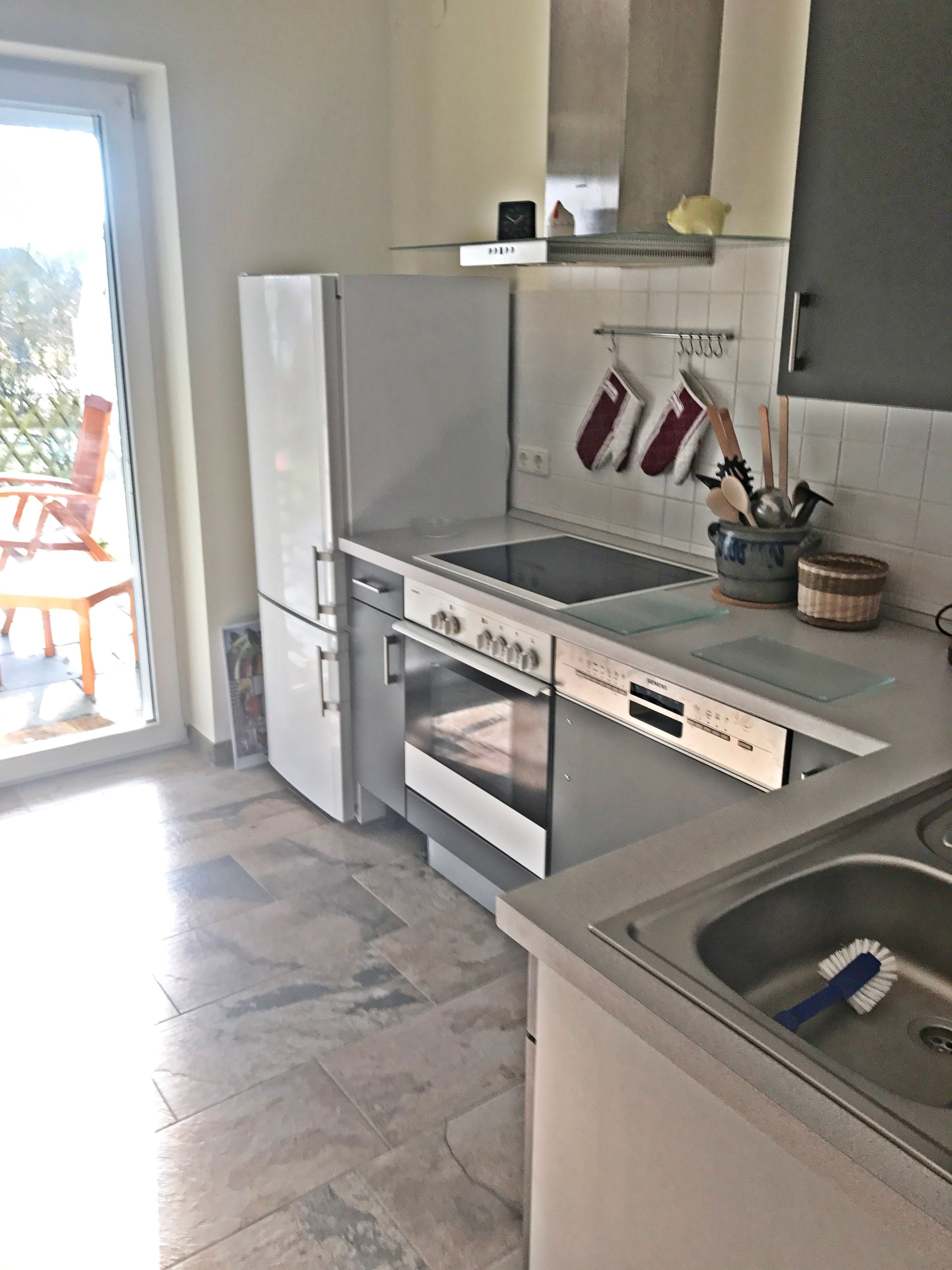 1 Küche mit Küchnezeile und Zugang zur Terrasse