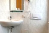 Mit der Größe von 38 Quadratmetern ist es das ideale Urlaubsdomizil für Paare oder kleine Familien. Der kombinierte Wohn-, Ess- und Kochbereich ist ausgestattet mit Flat TV, einem Esstisch für bis zu 3 Personen, mit einer kleinen Pantryküche (Kühlschrank und 2 Platten, Wasserkocher, Toaster, Kaffeemaschine, Gläser, Besteck, Kochutensilien) und einem bequemen Sofa. Das Sofa kann auch als Schlafstätte für eine weitere Person umfunktioniert werden, so dass das Appartement Platz für bis zu drei Personen bietet.