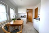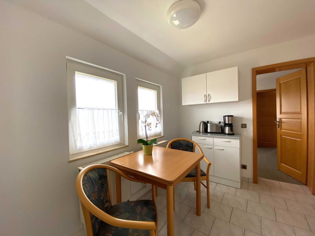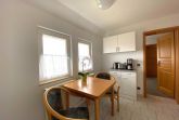 Das 2-Raum-Appartement im 1. Obergeschoss befindet sich im alten Bettenhaus. Die 36 Quadratmeter sind ideal für Paare oder kleine Familien. Das helle und freundliche Wohnzimmer mit dem Flat TV lädt zu gemütlichen und geselligen Fernseh- oder Spieleabenden ein. Das bequeme Sofa lässt sich im Nu zu einer bequemen Schlafstätte umwandeln, so dass das Appartement Platz für bis zu 3 Personen bietet. In der separaten Küche ist ein Esstisch, Kühlschrank mit 2 Platten, Wasserkocher, Toaster, Kaffeemaschine, Gläser, Besteck und Kochutensilien vorhanden. Das bequeme Doppelbett im Schlafzimmer verspricht einen erholsamen Schlaf. Das kleine, aber feine Badezimmer bietet Ihnen eine Dusche, ein WC und einen Haartrockner.