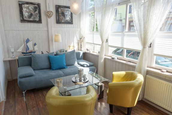 Gemütlich eingerichtete 2 Zimmer Ferienwohnung in den für Warnemünde so typischen Veranden der Kapitänshäuser in der pittoresken Altstadt von Warnemünde. Ein Parkplatz befindet sich in 10 Min. Entfernun gim Parkhaus Molenfeuer.