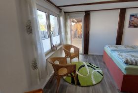 Das im Jahre 2023 modernisierte Ferienhaus befindet sich separat auf dem 1100 qm großen, sehr gepflegten Wohngrundstück des Eigentümers. Gaststätte, Einkauf- und Badestelle am Bodden befinden sich im Umkreis von 1 km. Es ist ausgestattet mit einem Wohnraum (Polstermöbel, LCD-TV, Radio/CD), einer offenen Küchenzeile (kleiner Esstisch, Induktionskochfeld, Kühlschrank mit Tiefkühlfach, Mikrowelle, div. Küchengeräte), Schlafraum (Doppelbett, Gästebett oder Kinderbett und Hochstuhl zum Zustellen), DU/WC (FB-Heizung) sowie Zentralheizung.