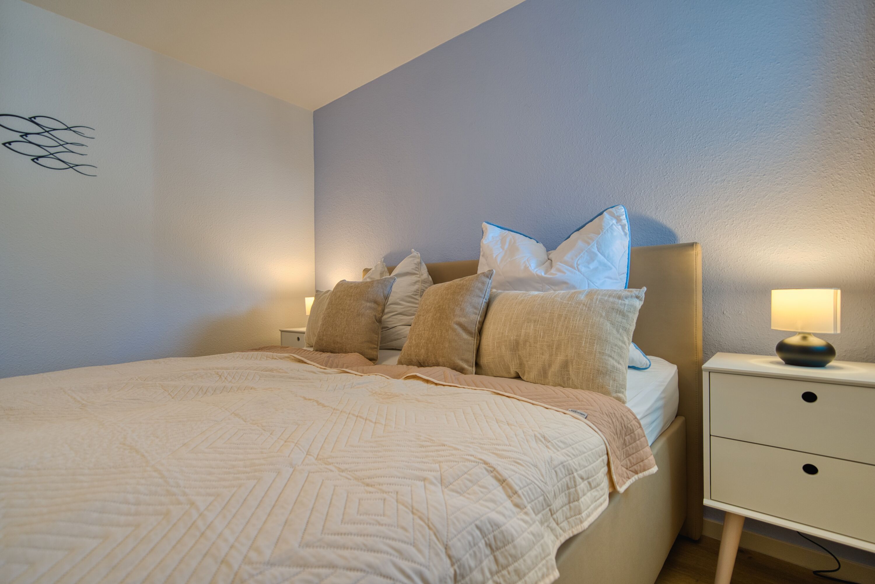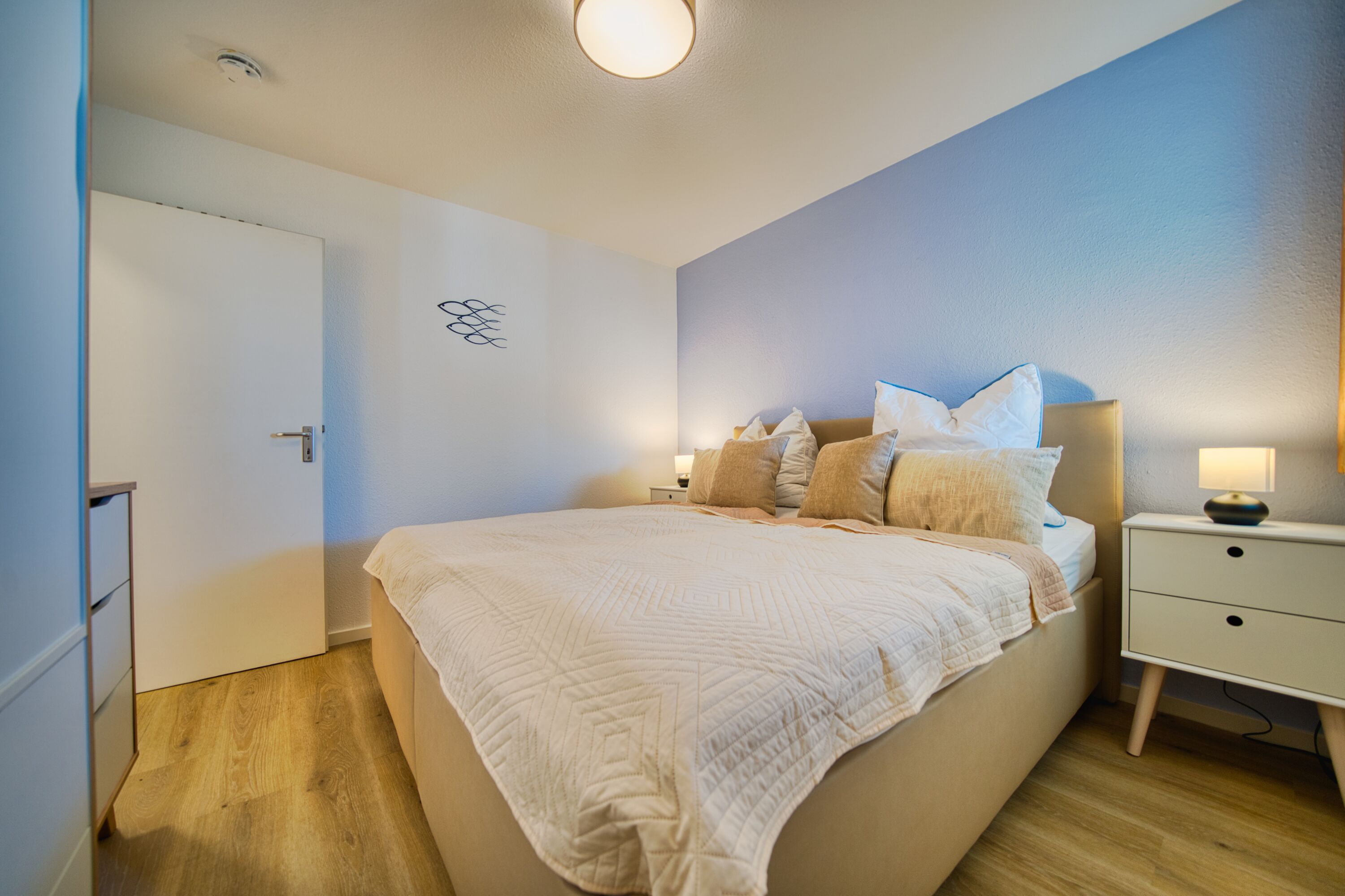 Das helle Ferienappartement in der 6. Etage bietet Platz für bis zu 4 Personen und ist bequem mit dem Fahrstuhl erreichbar. In unmittelbarer Nähe finden Sie Restaurants, Bäckereien und kleine Geschäfte für den täglichen Bedarf und gemütliches Bummeln.