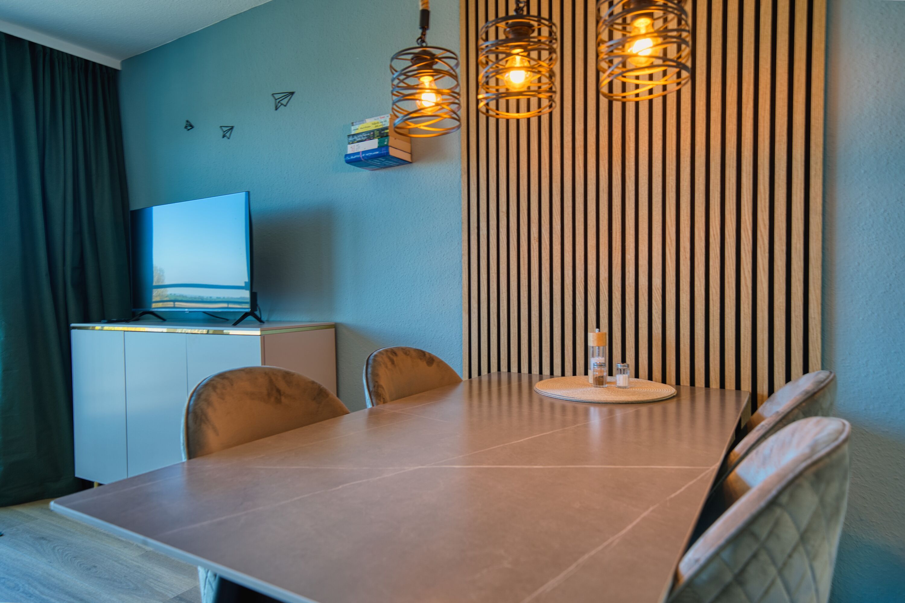 Wohnbereich mit gemütlichem Ecksofa, Flatscreen-TV und Essbereich