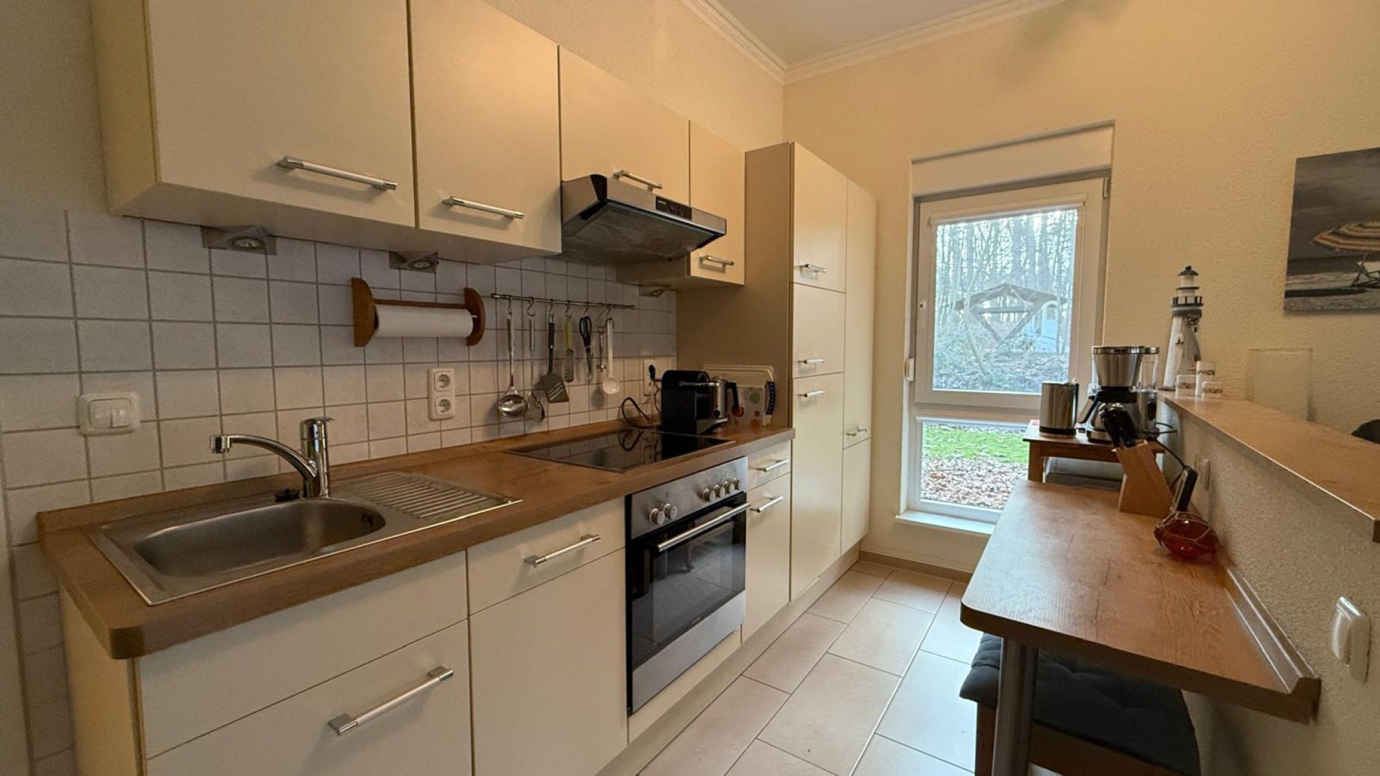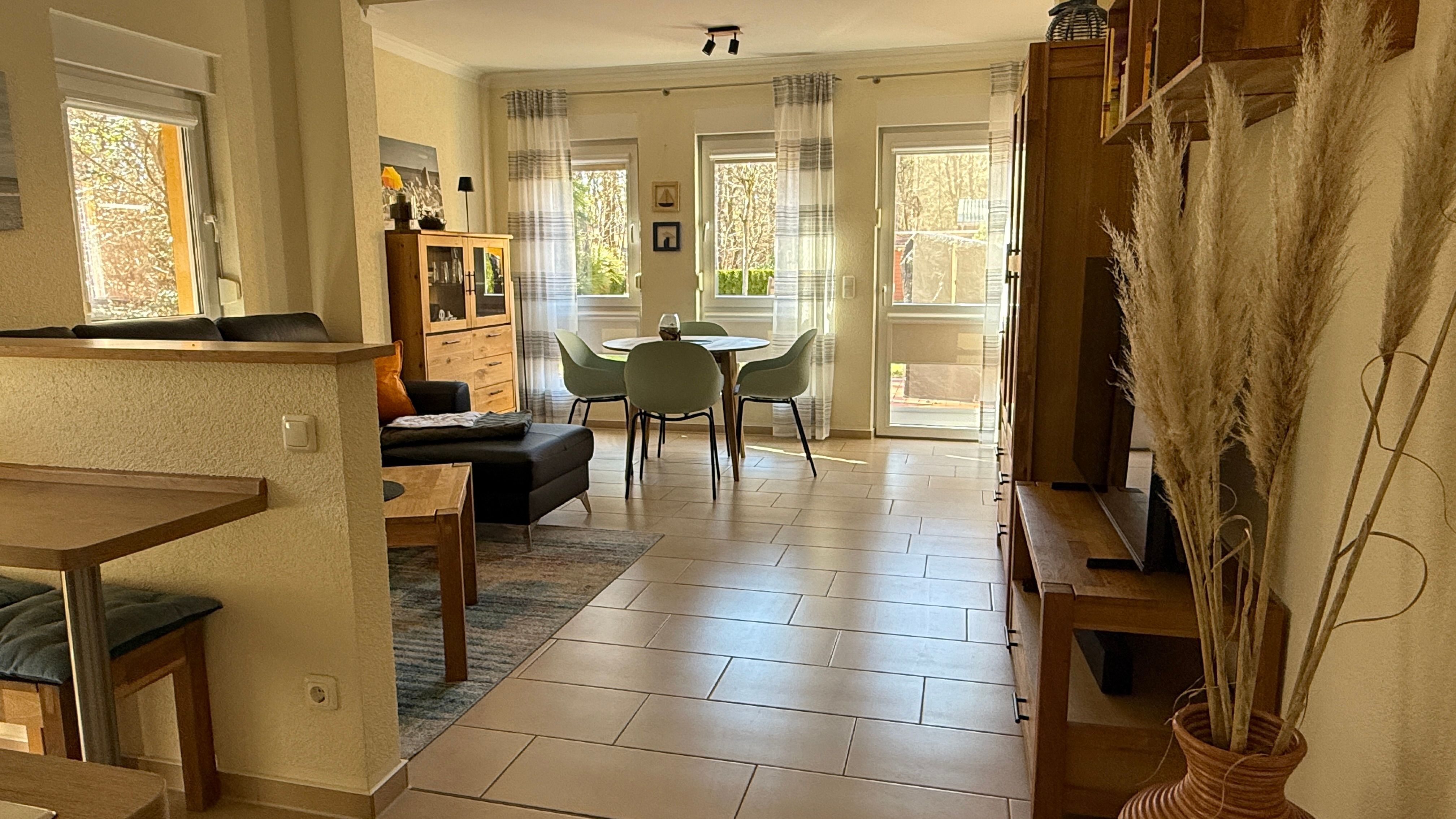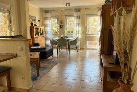Exklusive 52 m² Erdgeschoßwohnung mit großer möblierter Terrasse, eigenem Gartenanteil von 45 m² und einem PKW-Stellplatz. Die Wohnung ist hochwertig eingerichtet mit Fußbodenheizung, 2 Smart-TVs, Einbauküche mit Ceranherd, Backofen, Kühlschrank, Tiefkühlfach, Nespresso Kaffeeautomat, Wasserkocher & Toaster von WMF, Gläser, Besteck und Geschirr.