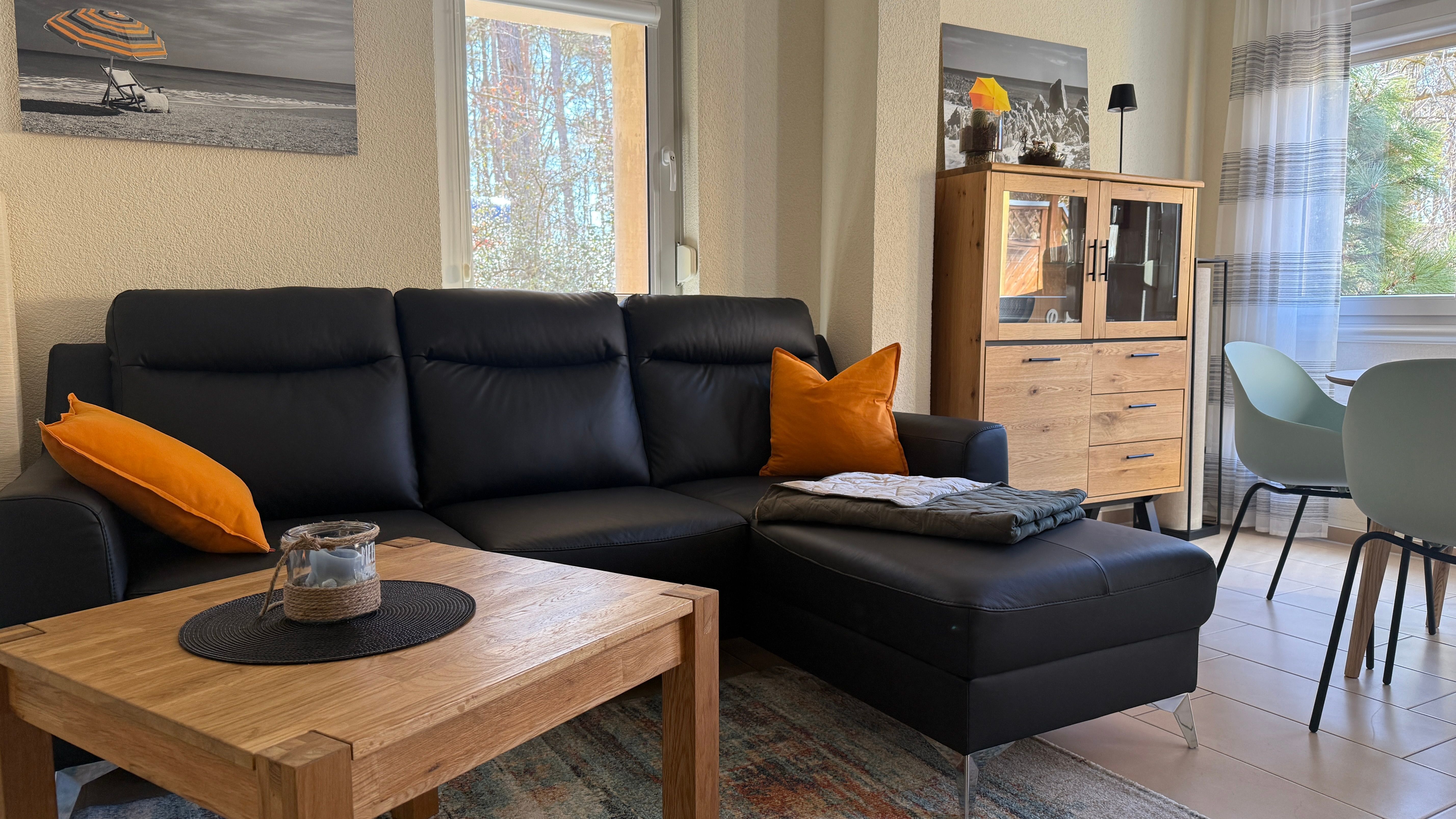 - die Couch im Wohnbereich ist zur Schlafgelegenheit ausziehbar