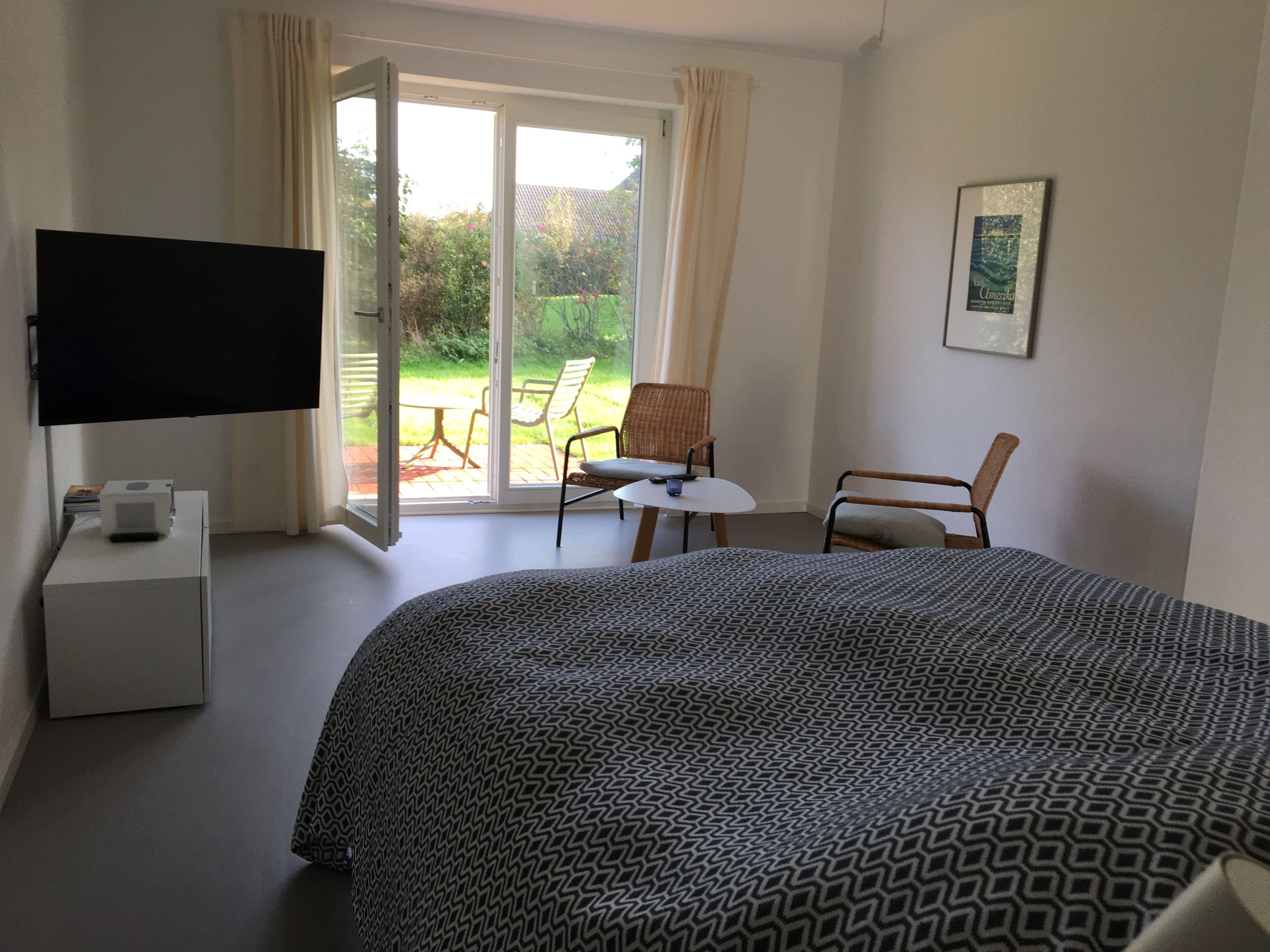 Die Inneneinrichtung ist minimalistisch und gleichzeitig elegant und lässig. Die Größe und Ausstattung aller Apartments ist identisch und nur in Details voneinander abweichend. Auch wenn es sich bei der Unterkunft um eine Pension handelt können meine Gäste doch auch weitestgehend Ihre Unabhängigkeit genießen, denn alle Apartments haben einen eigenen Eingang und eine eigene Terrasse.