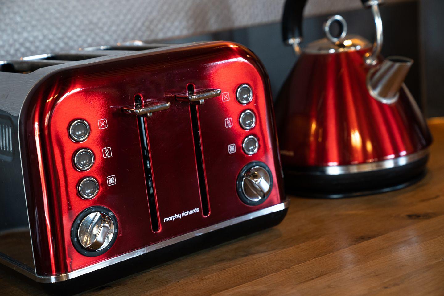 Die drei Schlafzimmer sind jeweils mit einem Boxspringbett und eines mit TV ausgestattet. Die Kleiderschränke gewähren Ihnen hinreichend Ablageflächen.