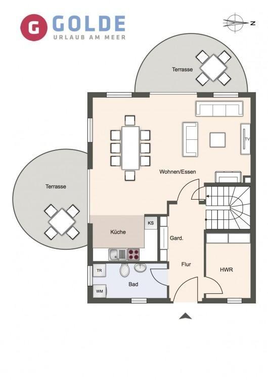 Die luxuriöse Haushälfte verfügt über ca. 130 m² Wohnfläche und bietet großzügigen Platz für 6 Personen.