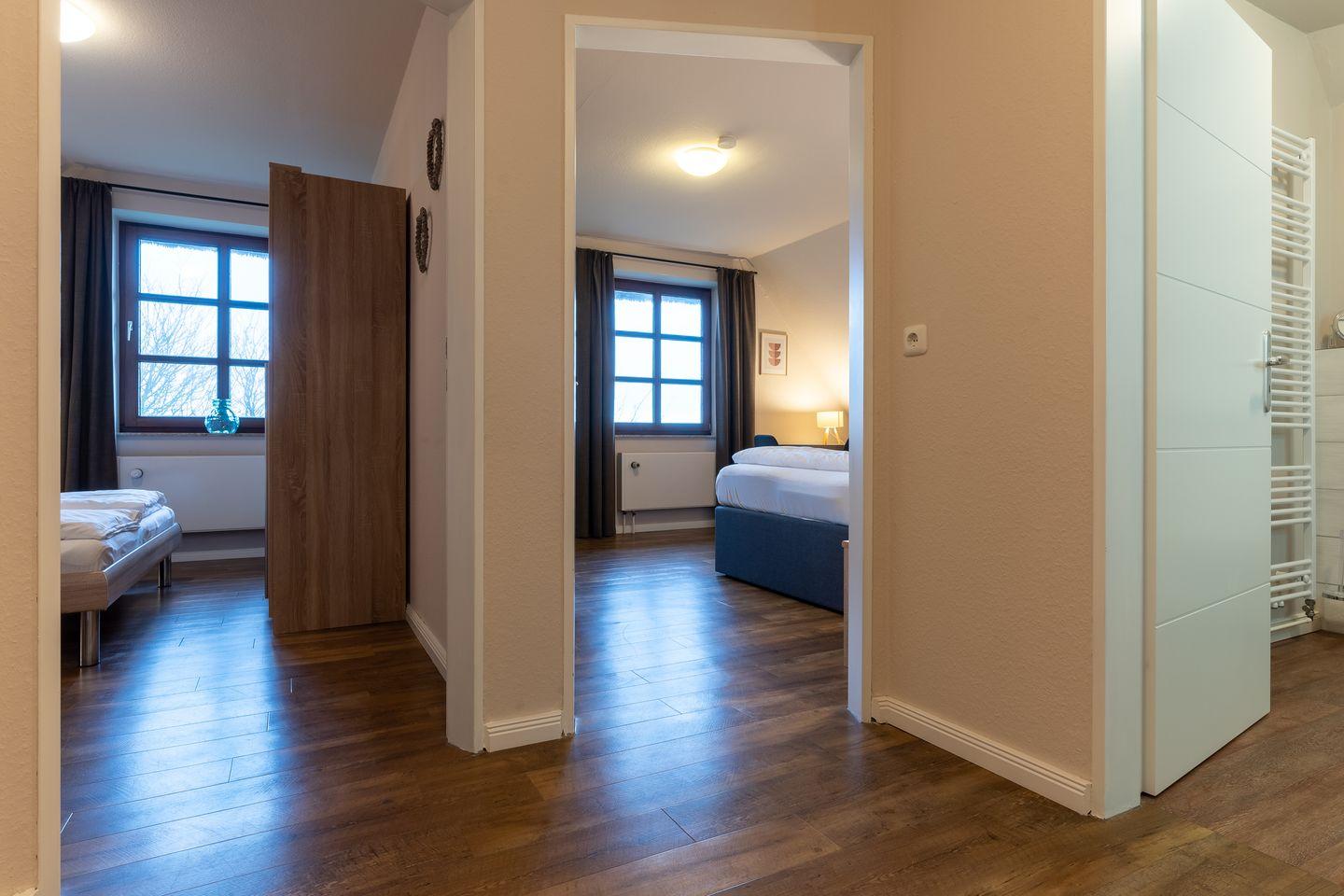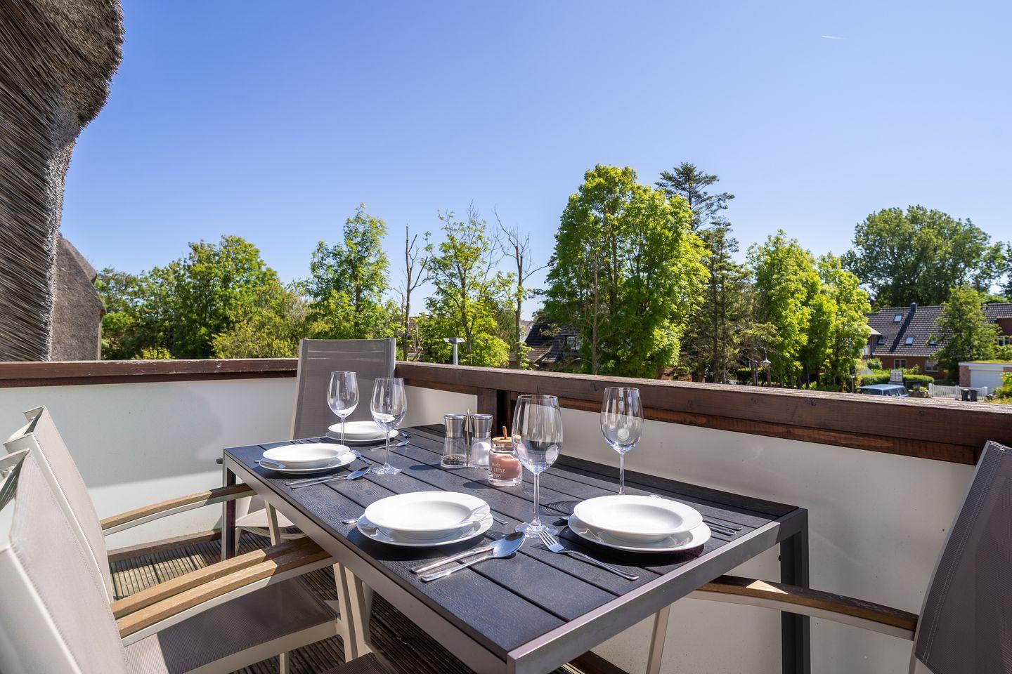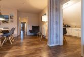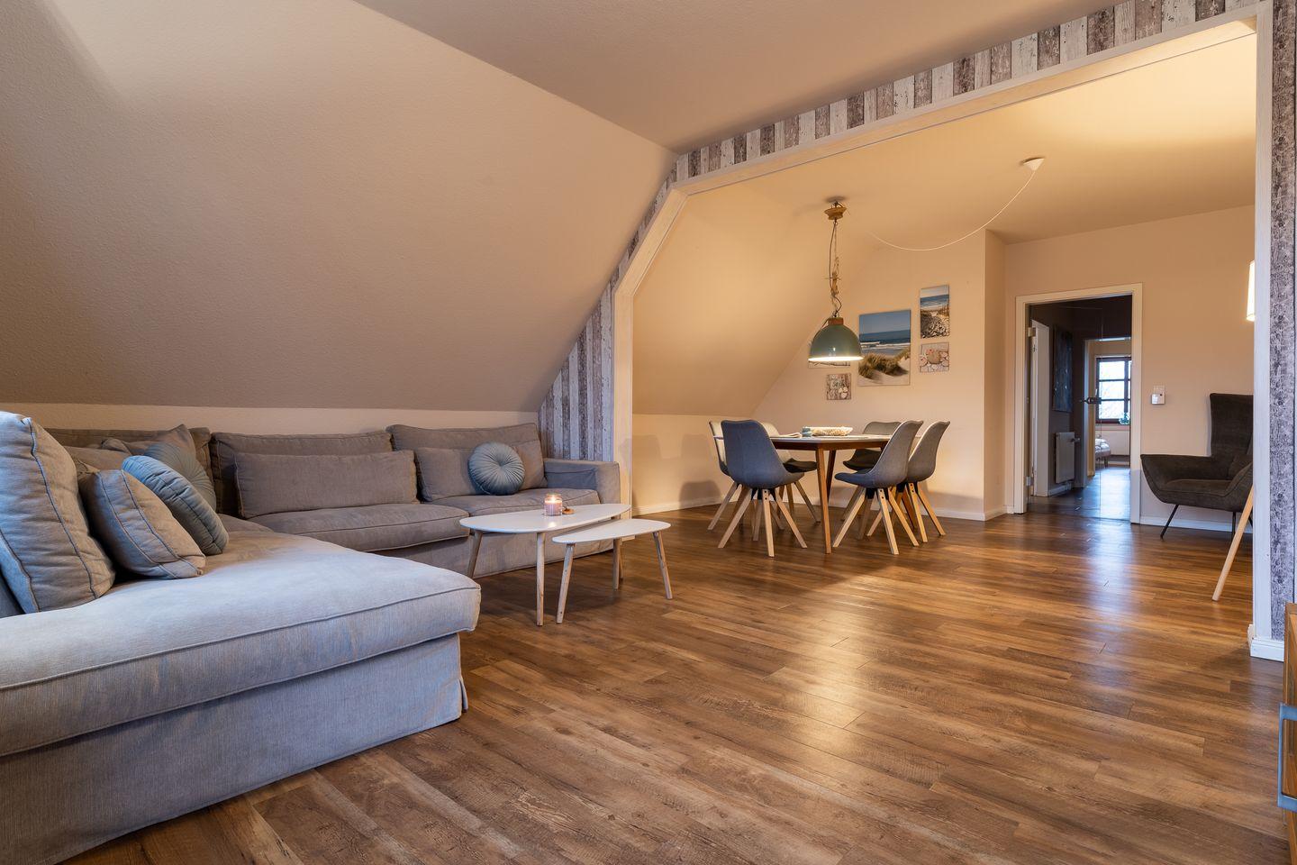 Das App. Scandi unter Reet verfügt über ca. 115 m² Wohnfläche und bietet Platz für 1-6 Personen. Die Wohnung befindet sich im Obergeschoss mit einem großzügige Wohnraum mit TV, gemütlichem Essbereich und einer separaten Küche. Die Wohnräume sind mit modernen Möbeln ausgestattet. An den Wohnbereich schließen sich ein Flur mit 3 Schlafzimmern. Ein Schlafzimmer mit einem Doppelbett, das Zweite mit einem Doppel-Boxspringbett und das Dritte mit 2 Einzelbetten, die zum Doppelbett zusammengeschoben sind. 3 Duschbäder bieten Ihnen jeden Komfort. Vom Wohnzimmer gelangen Sie auf eine großzügigen Balkon. Hier können Sie wunderbar entspannen und die Seele baumeln lassen.
