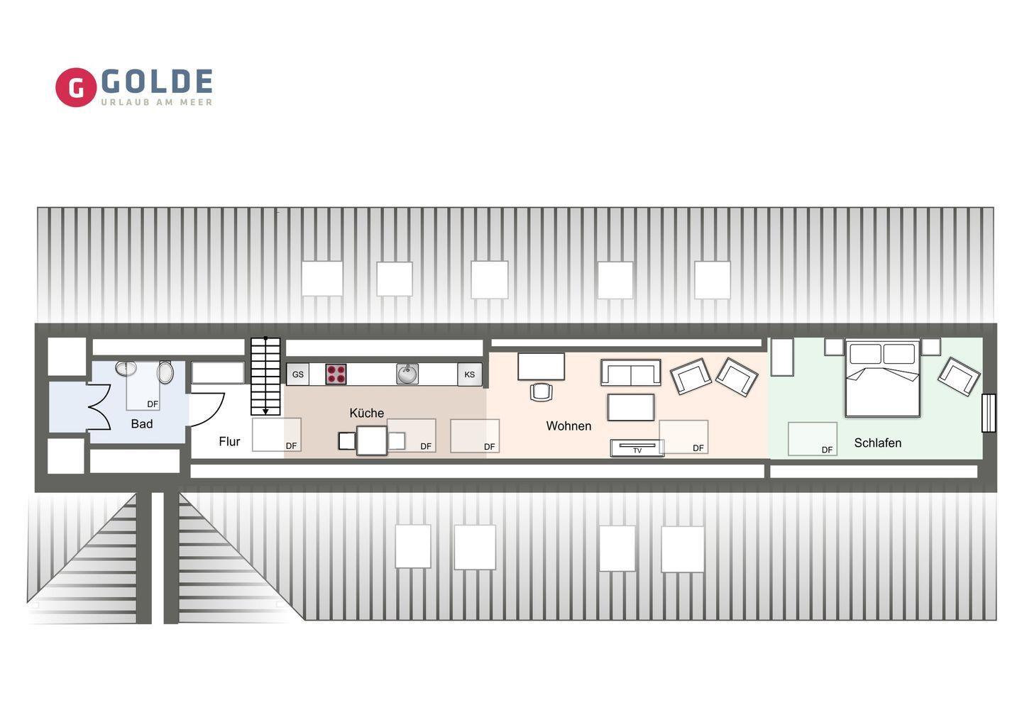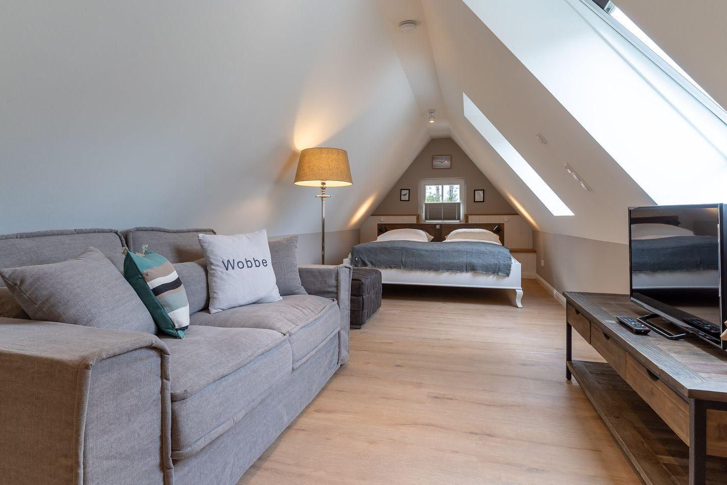 Das luxuriöse Loft Appartement Wobbe in dem Haus Böhl liegt im Dachgeschoss und verfügt über ca. 40m² Wohnfläche. Es bietet Platz für 1-2 Personen.