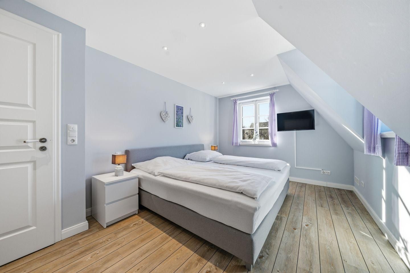 In den 4 Schlafzimmern warten gemütliche Doppelbetten auf Sie. Vom großzügigen 2 × 2m Bett, über die ordentliche 1,8 × 2m Koje bis zu den beiden kuscheligeren 1,4 × 2 m Betten.