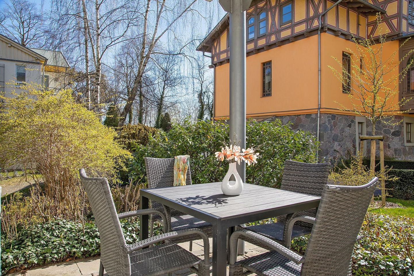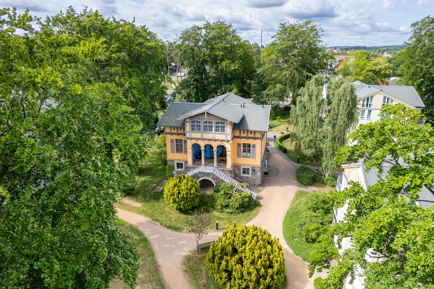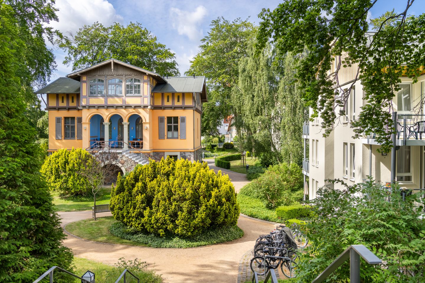 Die beliebte Ferienanlage liegt inmitten einer gepflegten Parkanlage im Kaiserbad Heringsdorf. Im Zentrum der Parkanlage befindet sich eine nostalgische Villa, die umrahmt wird von drei modernen Neubauten. Genießt die einmalige und ruhige Lage eures Urlaubszuhauses.