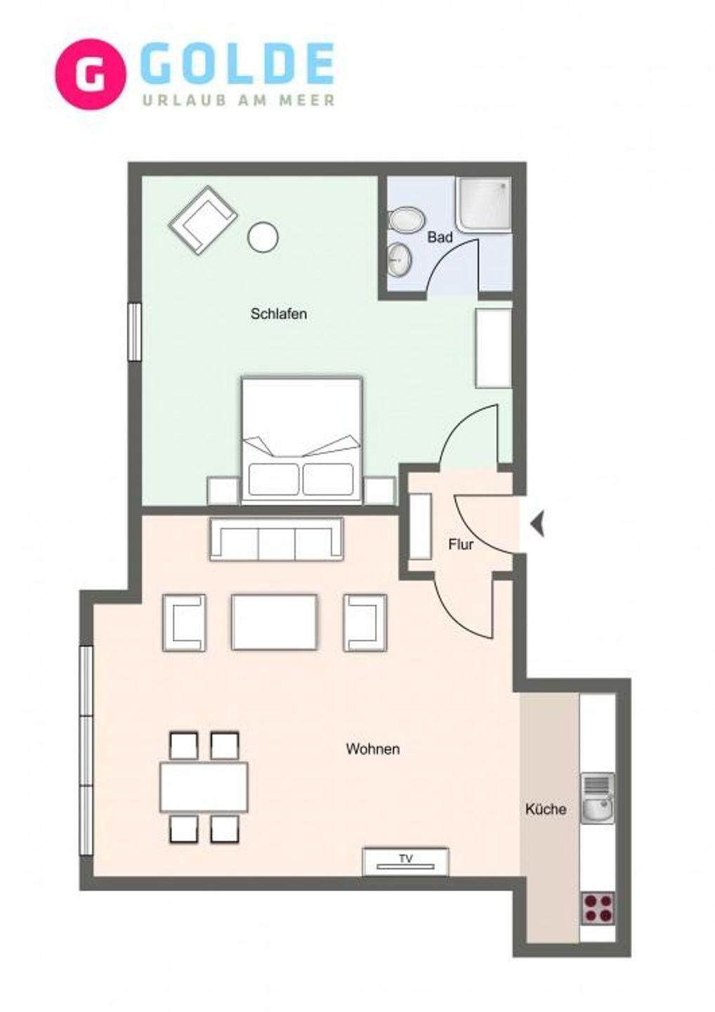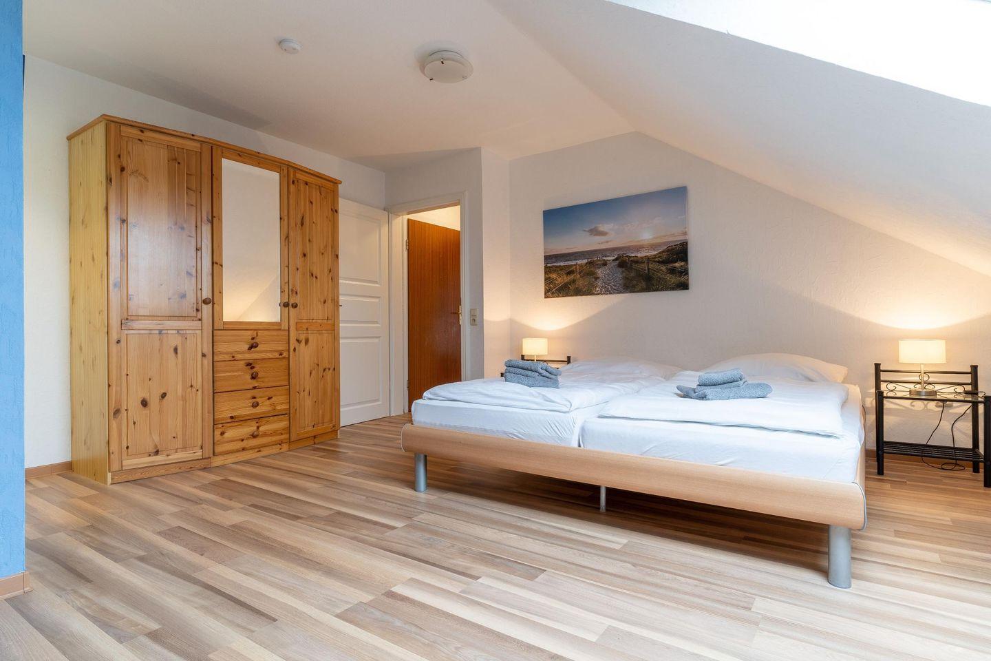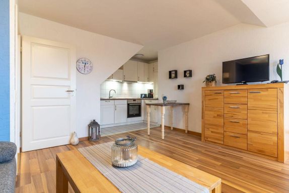 In dieser Wohnung im 2. Obergeschoss frühstücken Sie morgens schon zu viert mit einem spektakulären Blick über den Deich oder genießen den Sonnenuntergang am Abend bei einem Glas Wein. Die frisch modernisierten Wohn- und Schlafräume bieten komfortablen Platz für 2-4 Personen auf 54 qm und sind der ideale Ausgangspunkt für Ihren Urlaub.